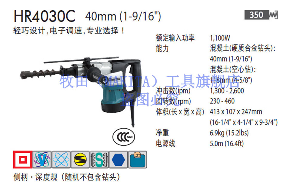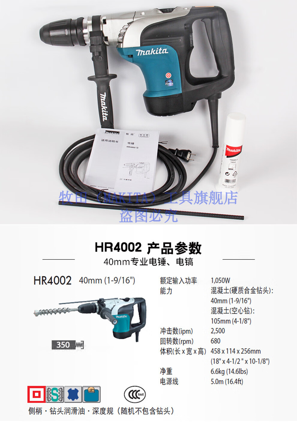 Makita Makita electric hammer electric pick dual-purpose multi-functional industrial high-power concrete drilling tool HR4002 electric tool Makita HR4002 electric hammer (40MM)