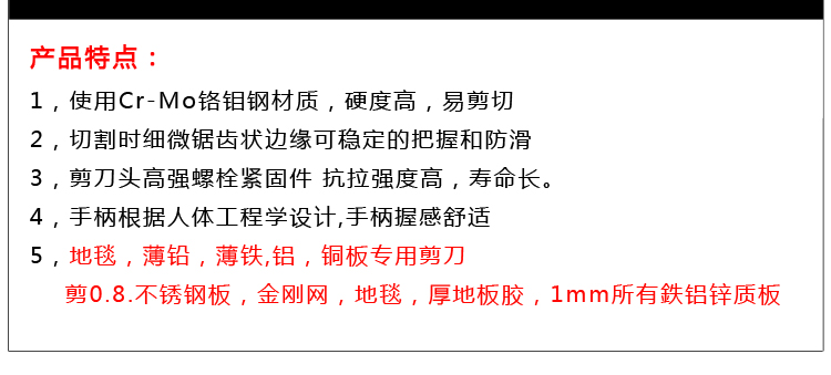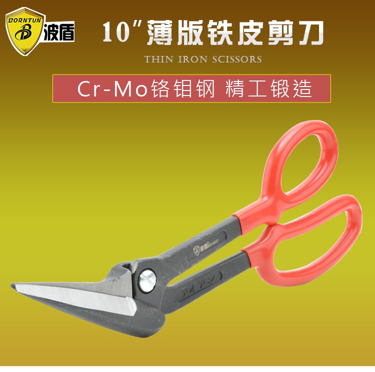 Bodun 10-inch stainless steel sheet scissors, industrial-grade metal scissors, flat-head aviation scissors, diamond mesh scissors, carpet scissors BD-4451