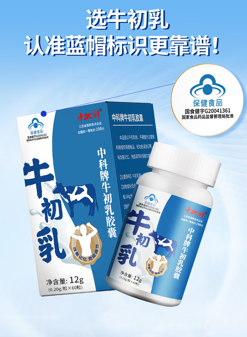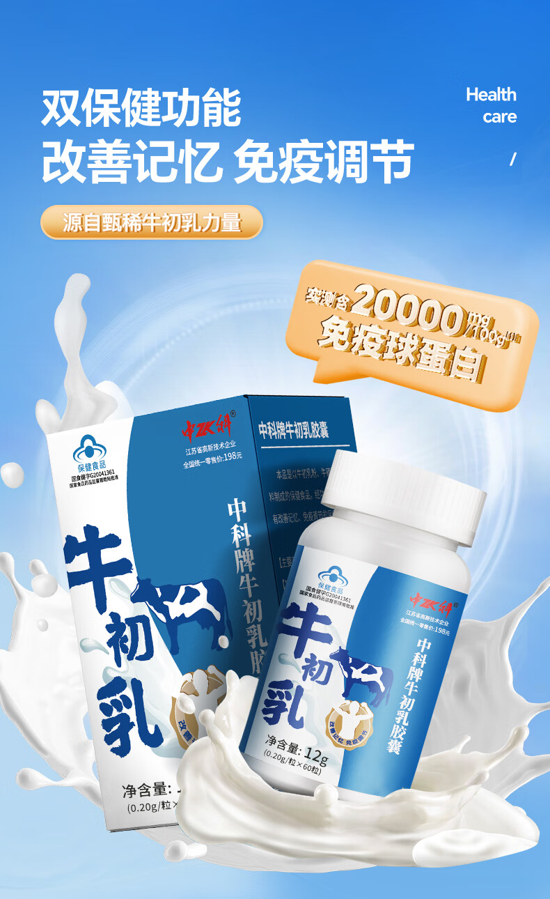 Zhongke Bovine Colostrum Capsules improve memory, immune globulin enhances immunity, rich in taurine authentic health products 60 capsules*1 bottle