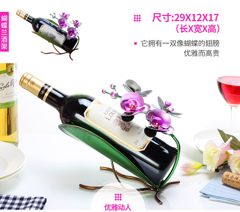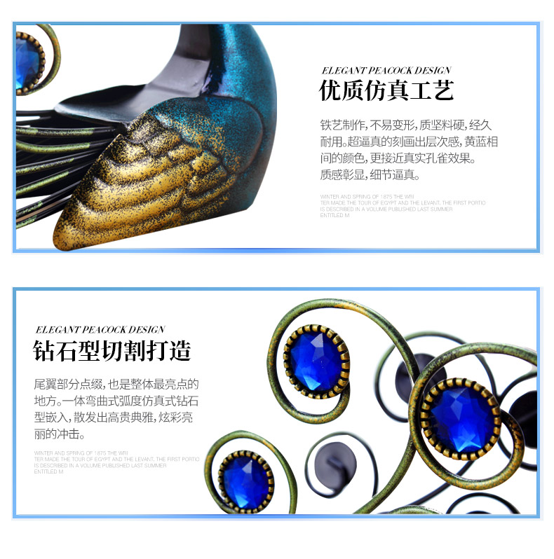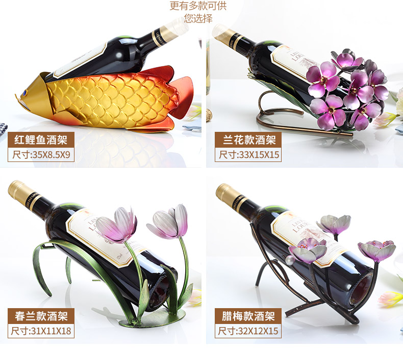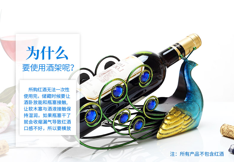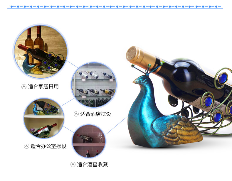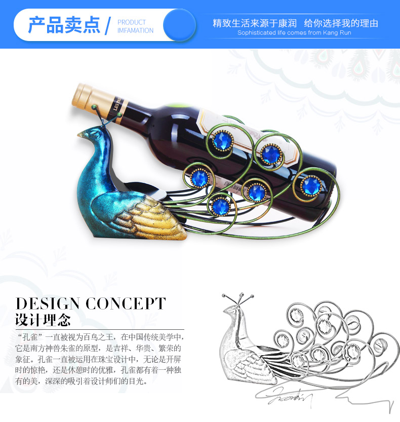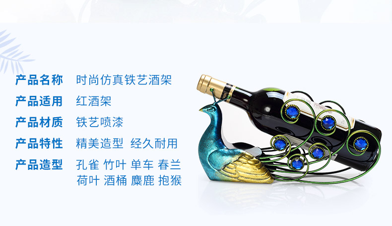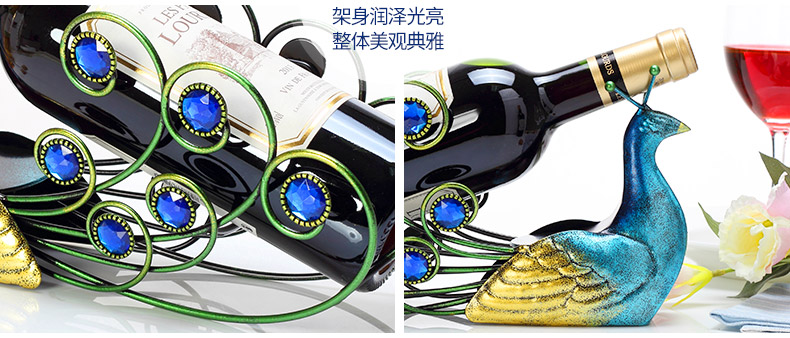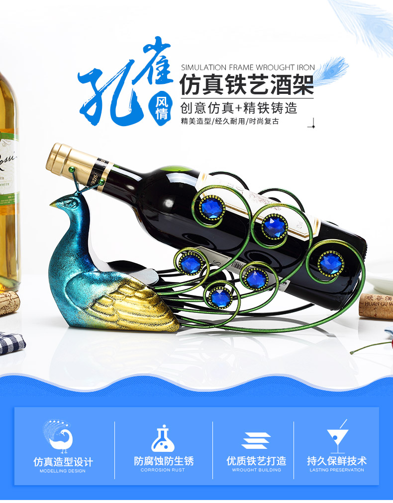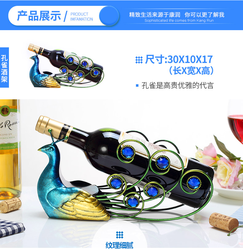 Kangzhirun red wine rack ornaments European creative wine rack wine bottle rack iron art home simulation wine rack display rack peacock style