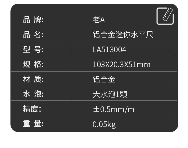 LAOA (LAOA) mini portable aluminum spirit level 100MM LA513004