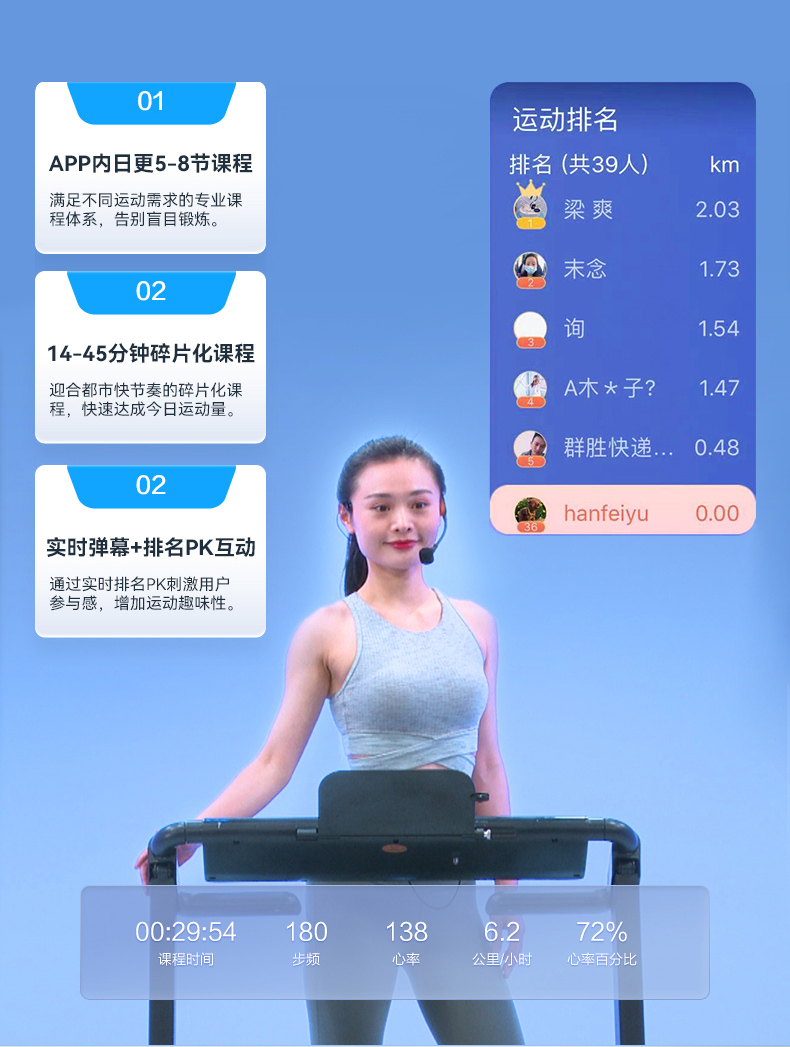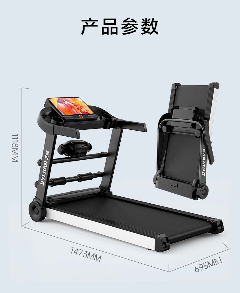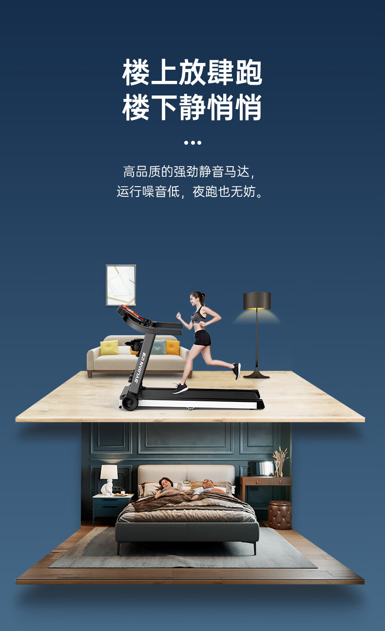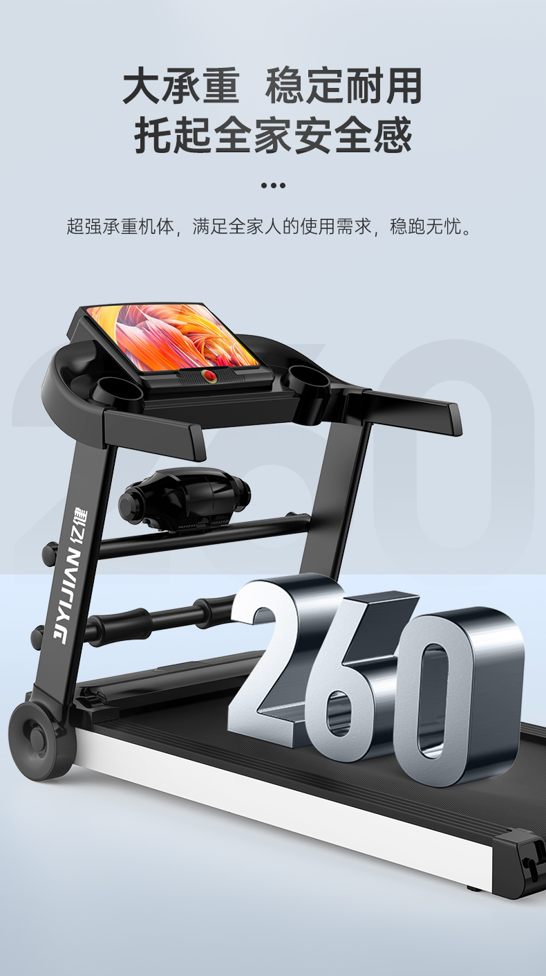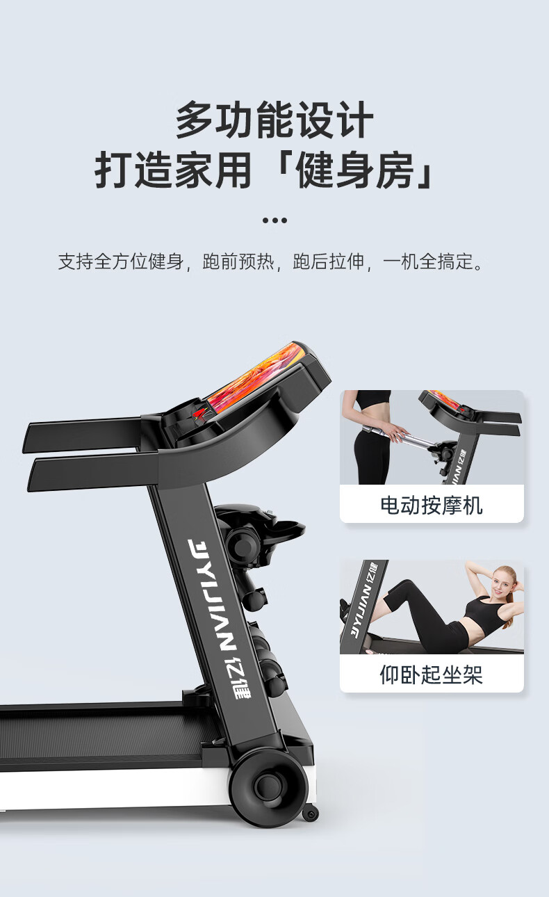 YIJIAN Treadmill Home Silent Foldable Smart Shock Absorbing Gym Level Walking Machine 007S Blue Screen Single Function