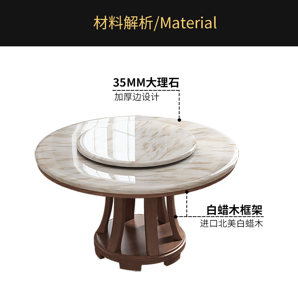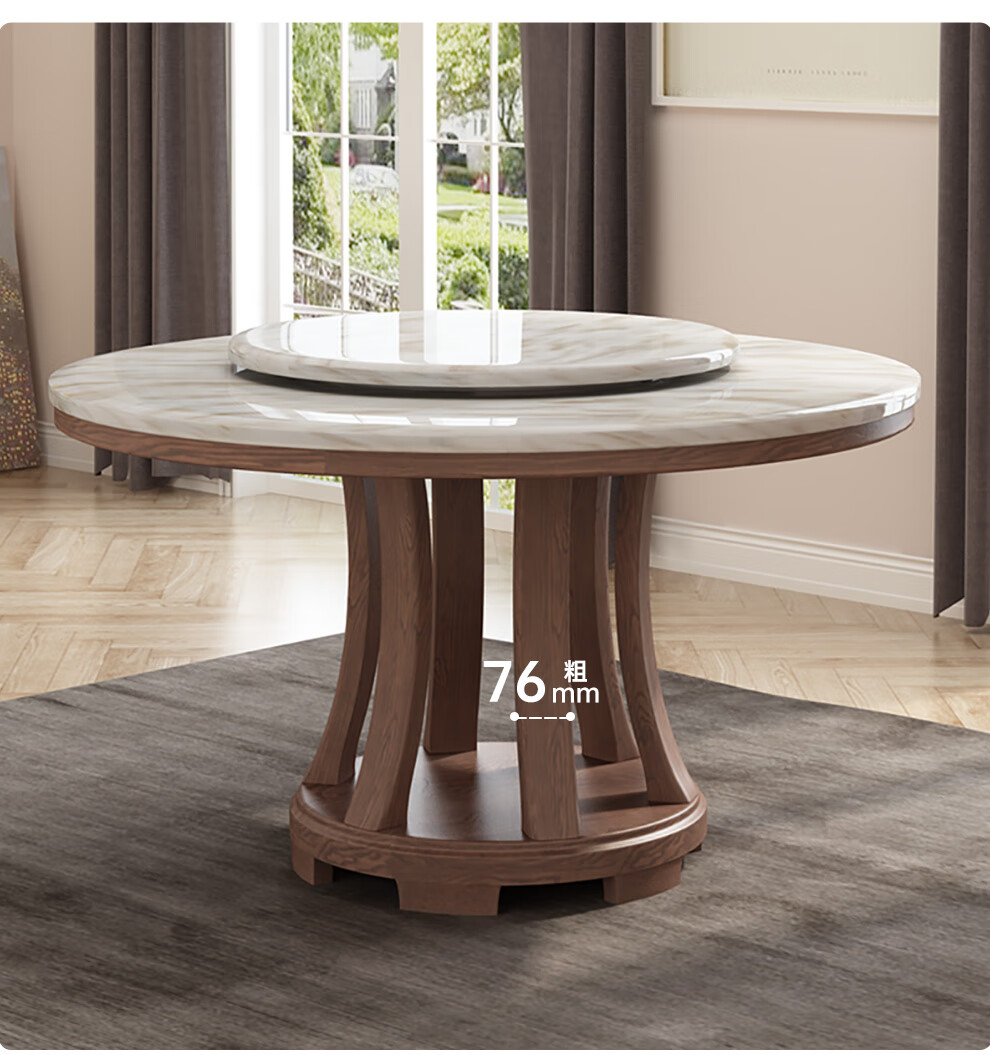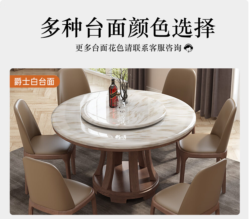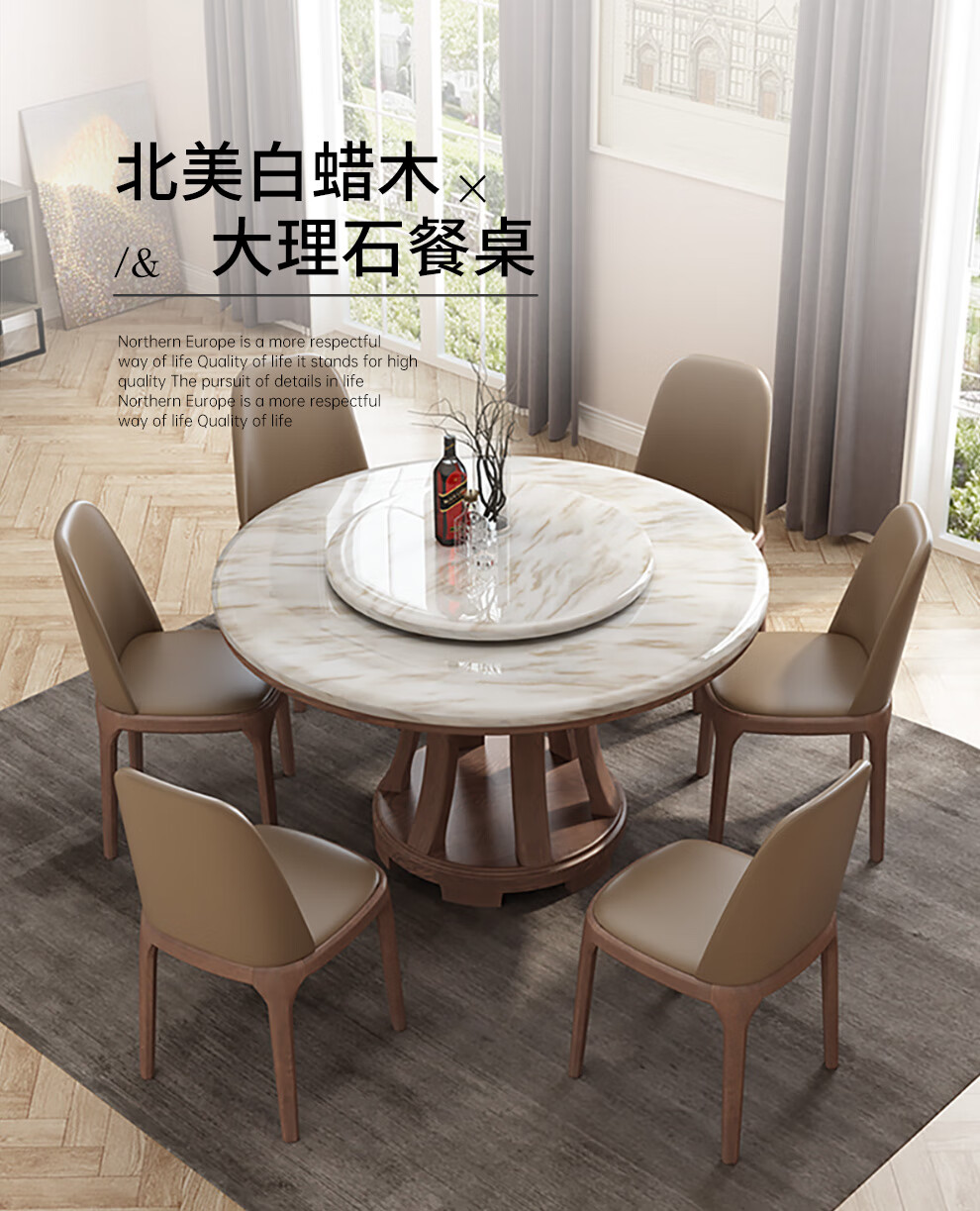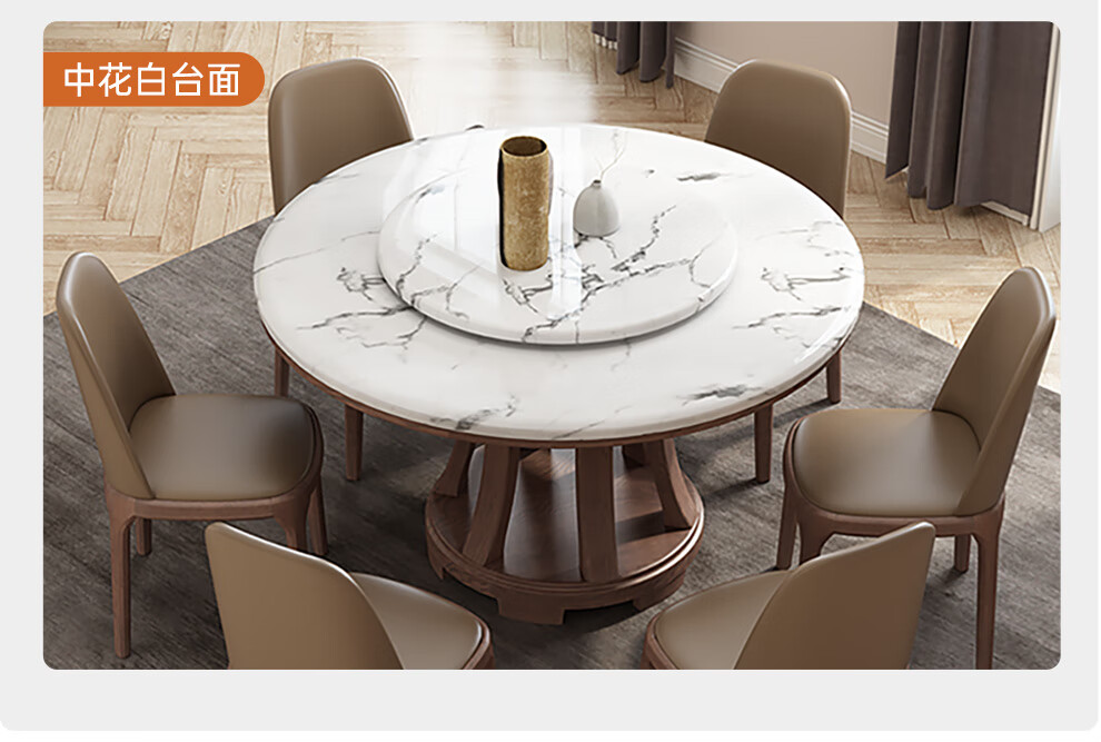 Caiwei marble dining table home dining table and chair combination solid wood ash large round table modern simple round dining table 1.35 meters single dining table (with turntable)