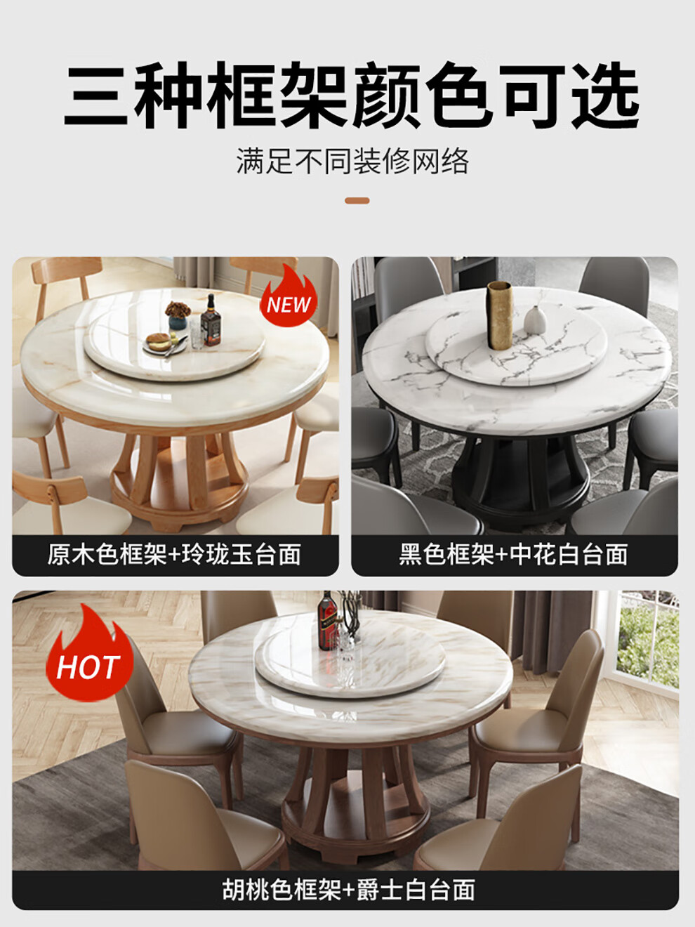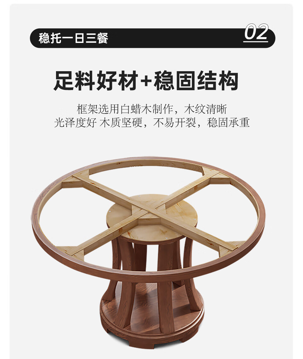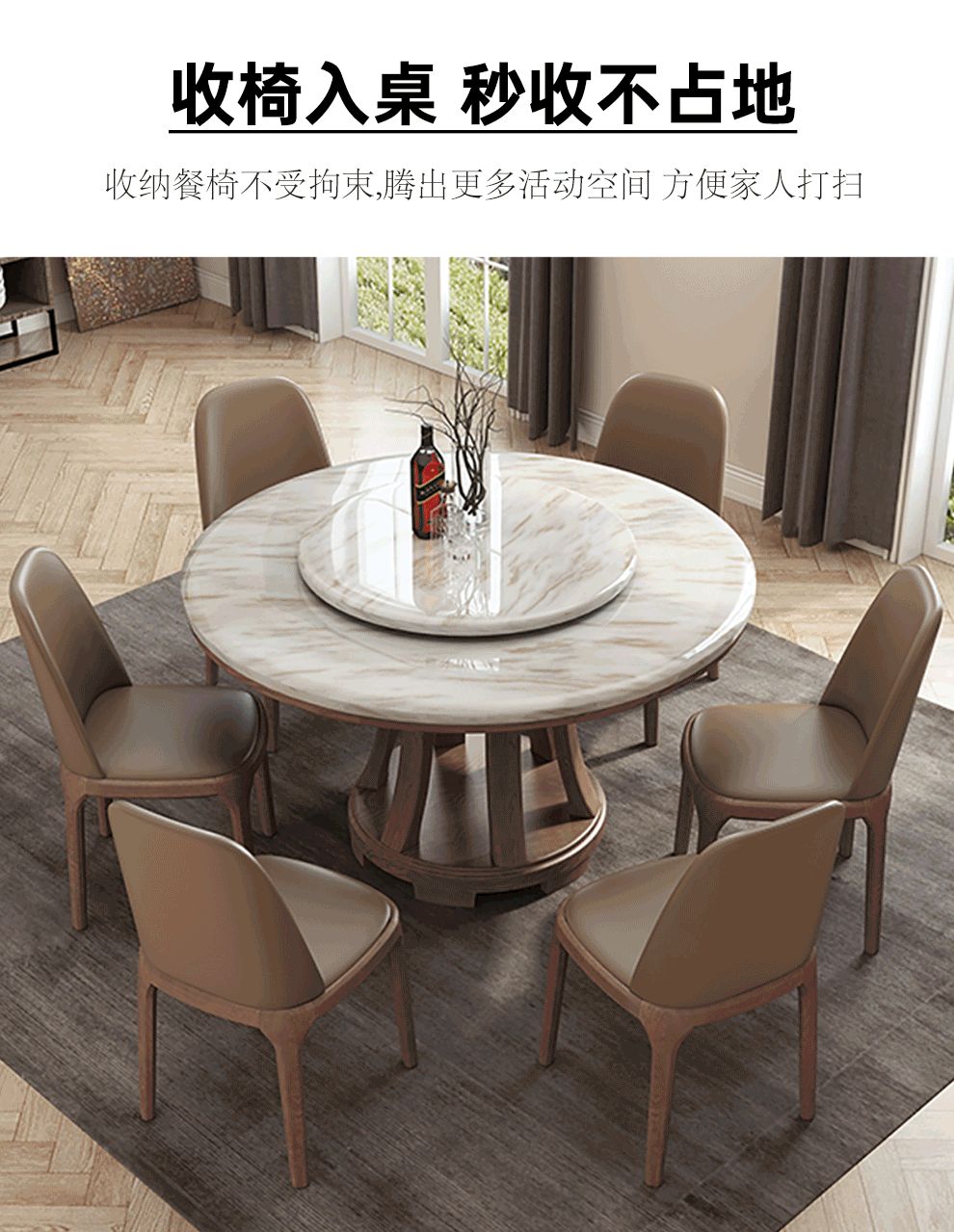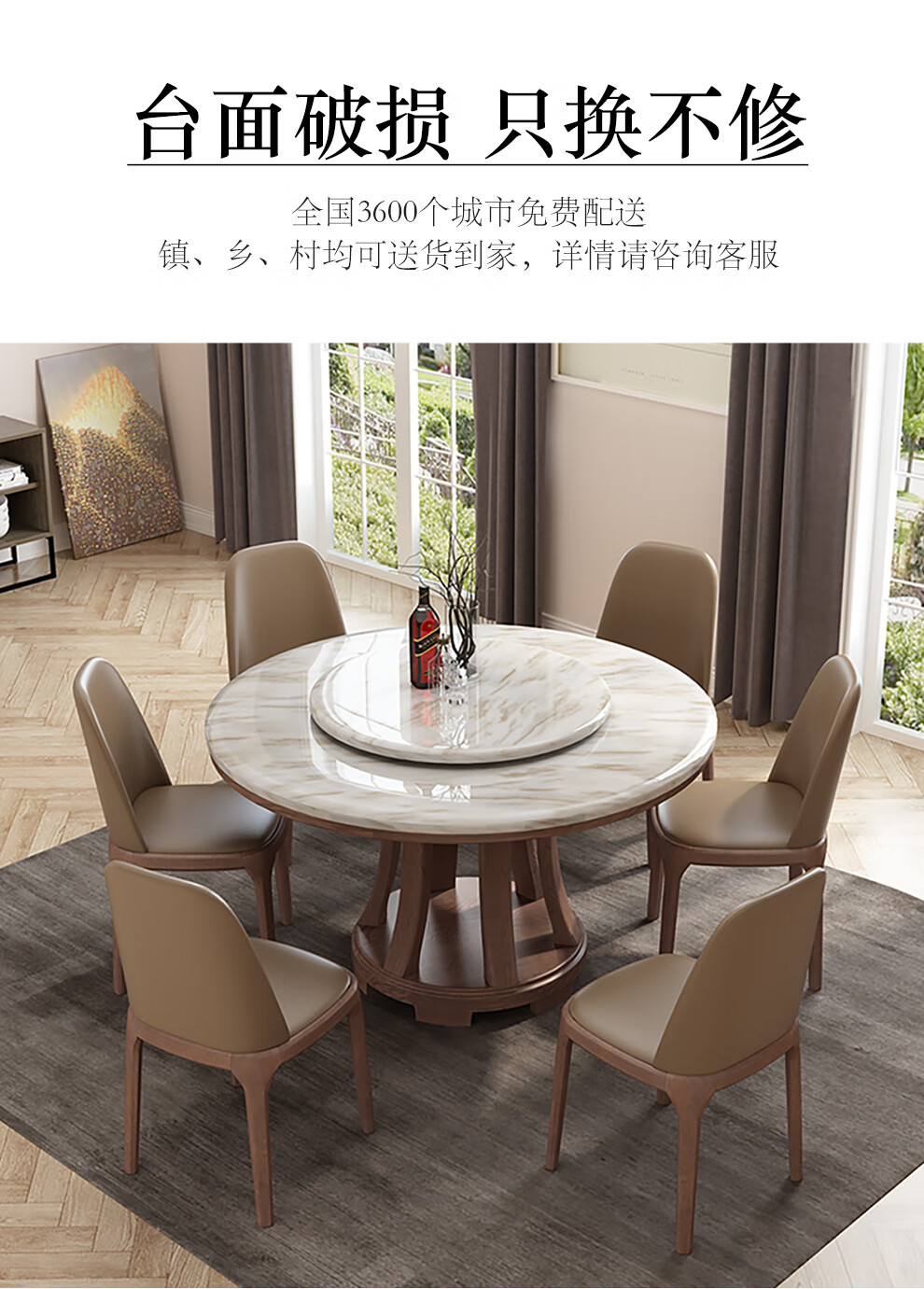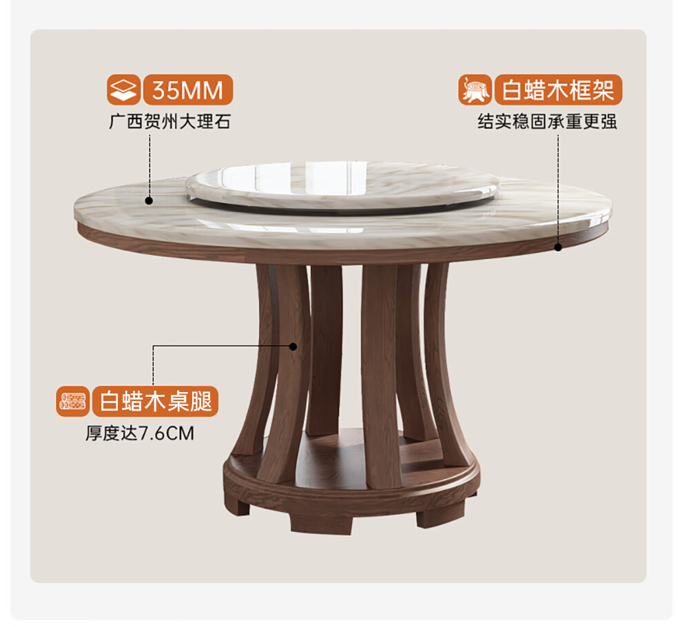 Caiwei marble dining table home dining table and chair combination solid wood ash large round table modern simple round dining table 1.35 meters single dining table (with turntable)