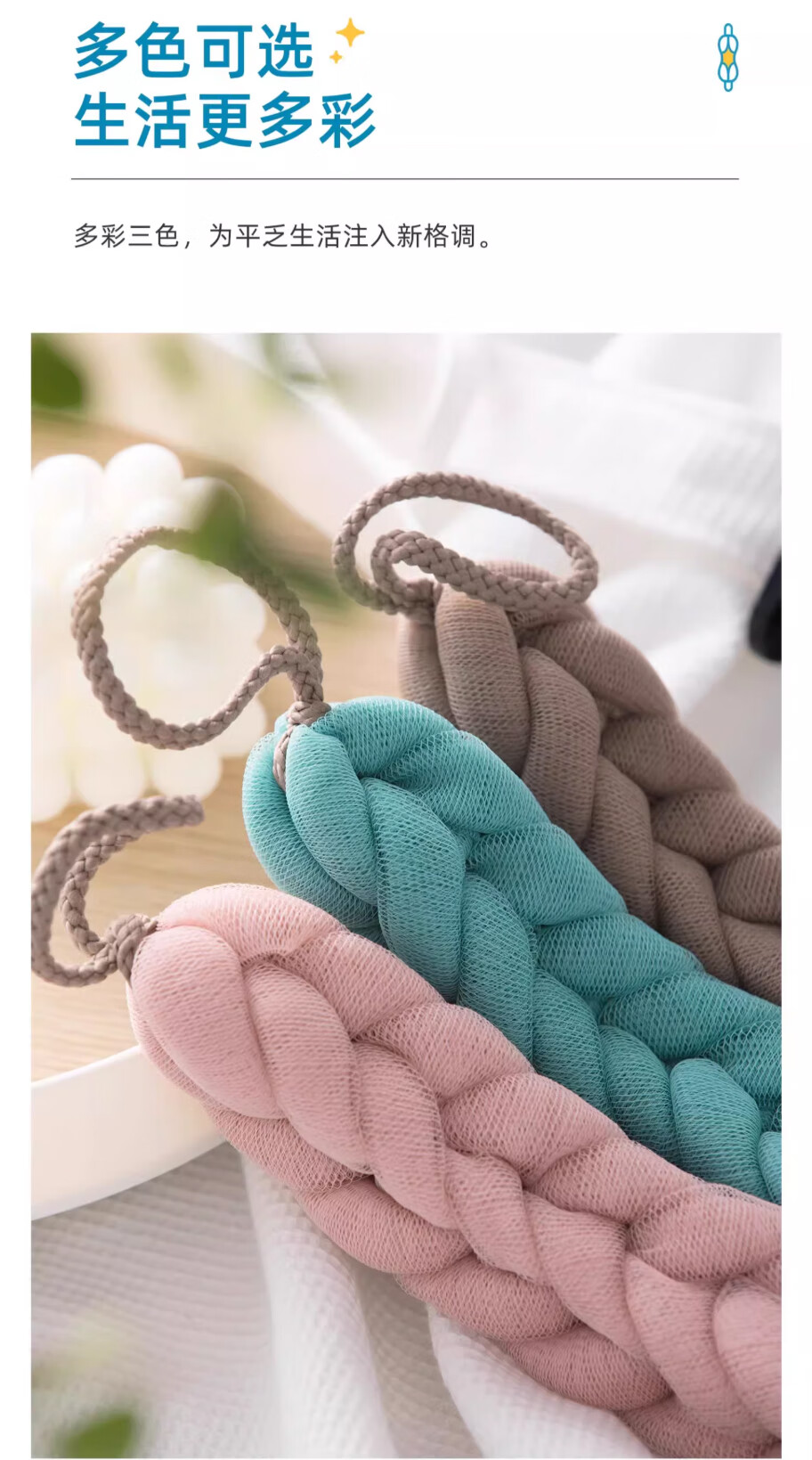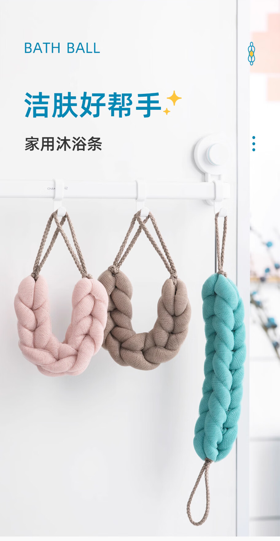 Camellia (CHAHUA) bath ball, bath towel, back strip, bath towel, back rub, long strip, bath towel, bath strip, bath ball, bath flower, 1 bath strip (new blue)