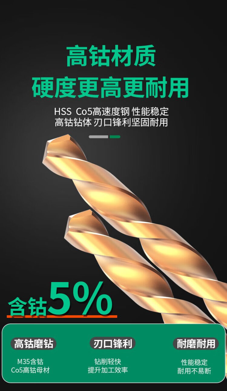 LAOA high-speed steel cobalt-containing drill stainless steel drill bit metal hole drill stainless steel cobalt-containing twist drill 1.5mm-10mm 4.2MM (10 pieces) LA162009