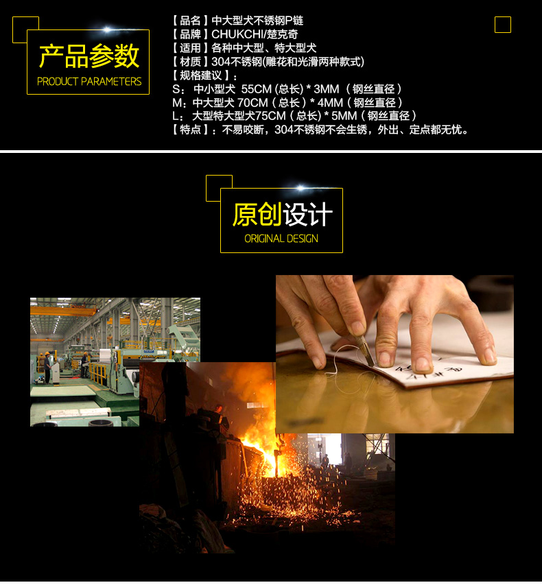 Chukchi (CHUKCHI) Dog P Chain Stainless Steel Pet Chain Retractable Dog Collar German Shepherd Golden Retriever for Medium and Large Dogs Stainless Steel Smooth 70cm*4mm Large Dogs