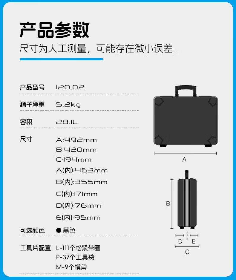 Beiwei portable hardware tool box empty box household industrial maintenance multi-functional vehicle tool storage box 120.02 120.02/P