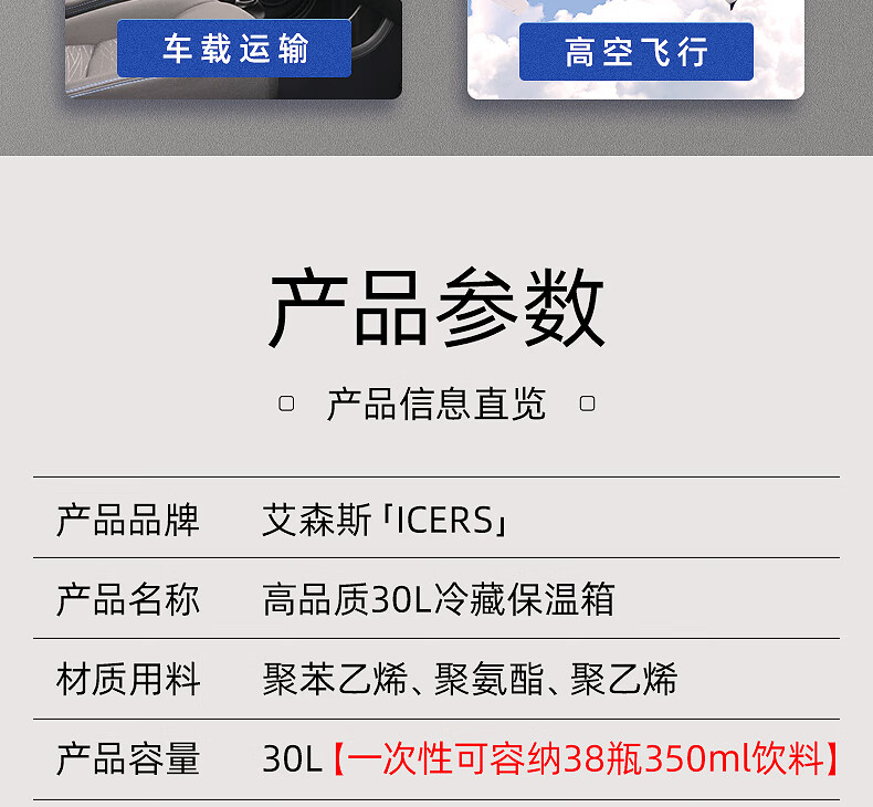 ICERS Eisens 30L outdoor PU insulated box pharmaceutical refrigerator biological reagent safe transfer fresh box cold chain A model blue + strap temperature display (refrigerated 48-72H)