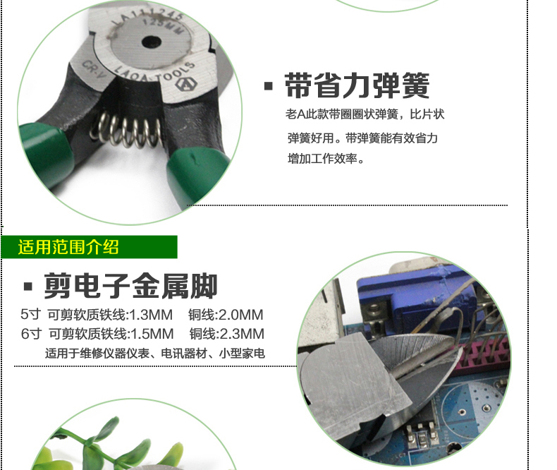 LAOA (LAOA) chromium vanadium steel precision water mouth pliers diagonal nose pliers diagonal nose pliers model shear diagonal nose pliers offset mouth pliers water mouth pliers 5 inches LA111245