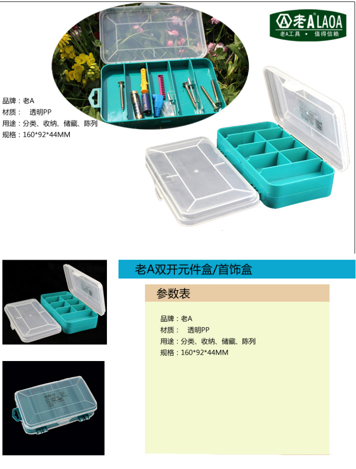 LAOA (LAOA) 13-grid mini drop-resistant double-open parts box LA911213