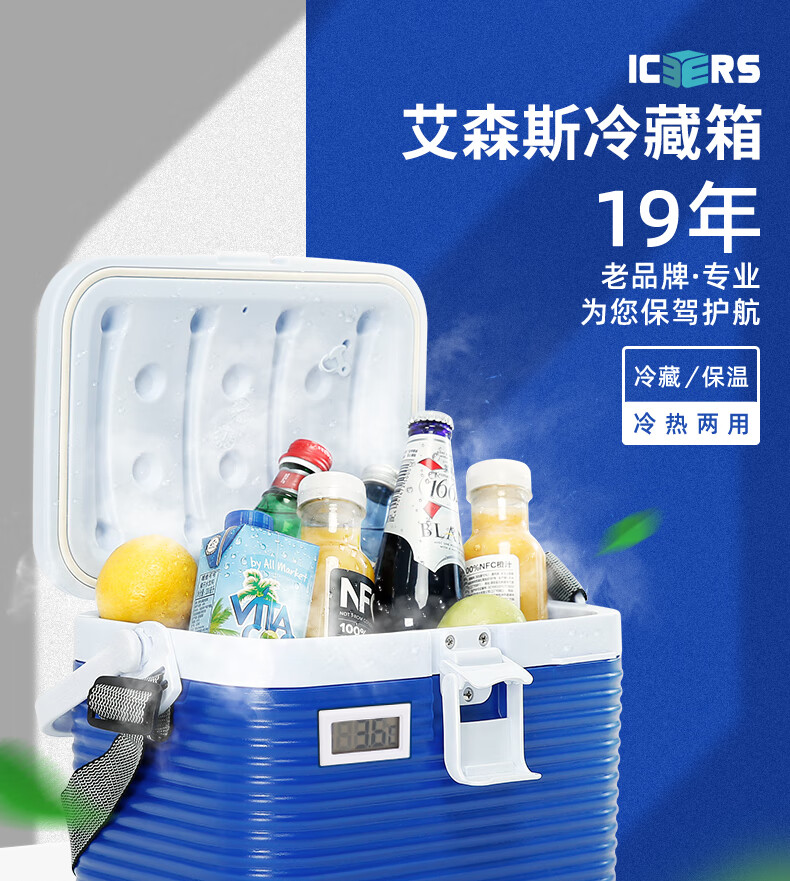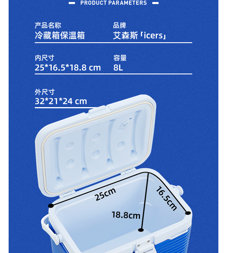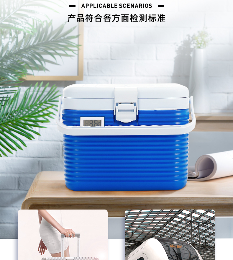 ICERS Eisens 8L Insulated Box Pharmaceutical Refrigerator Portable Biological Reagent Specimen Transfer Box Breast Milk Backpack Blue (PU6 Side Foam) Free 400ml Ice Bag*4 With Temperature Display