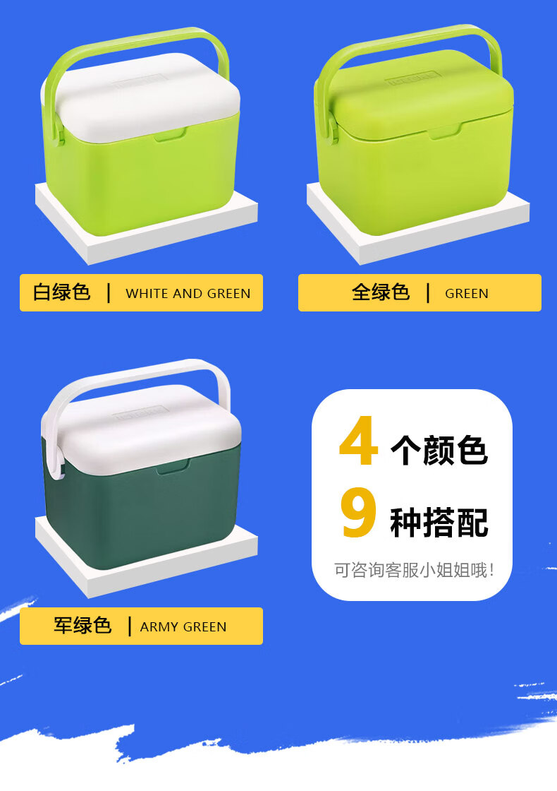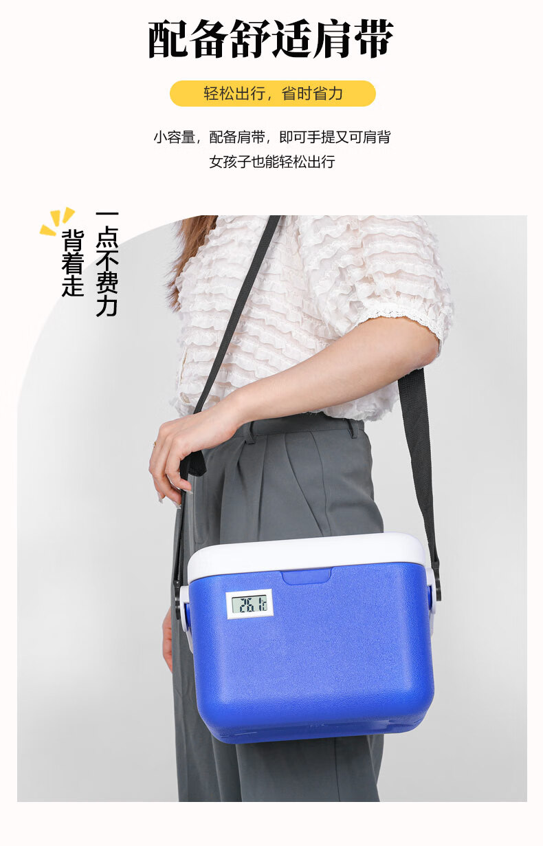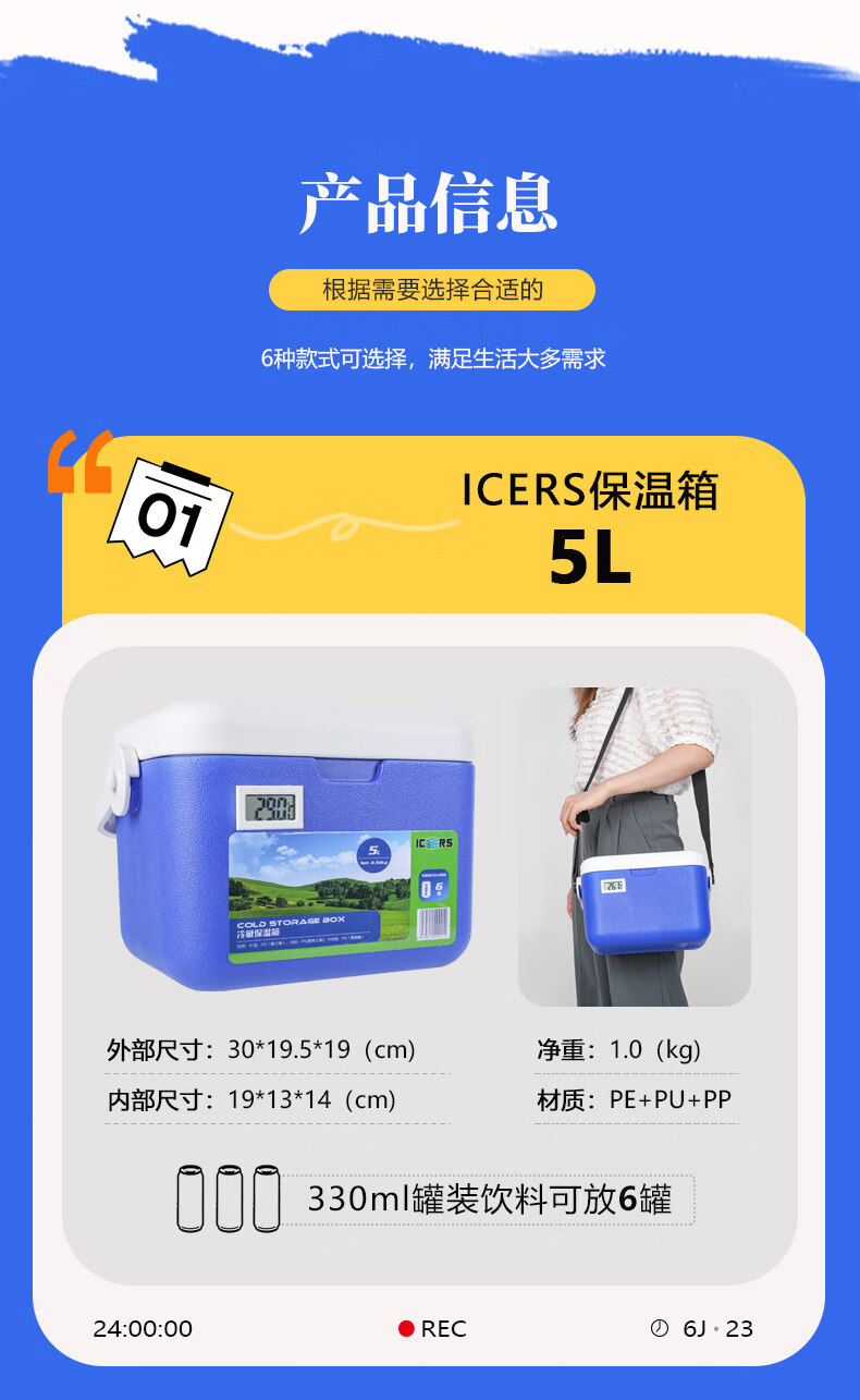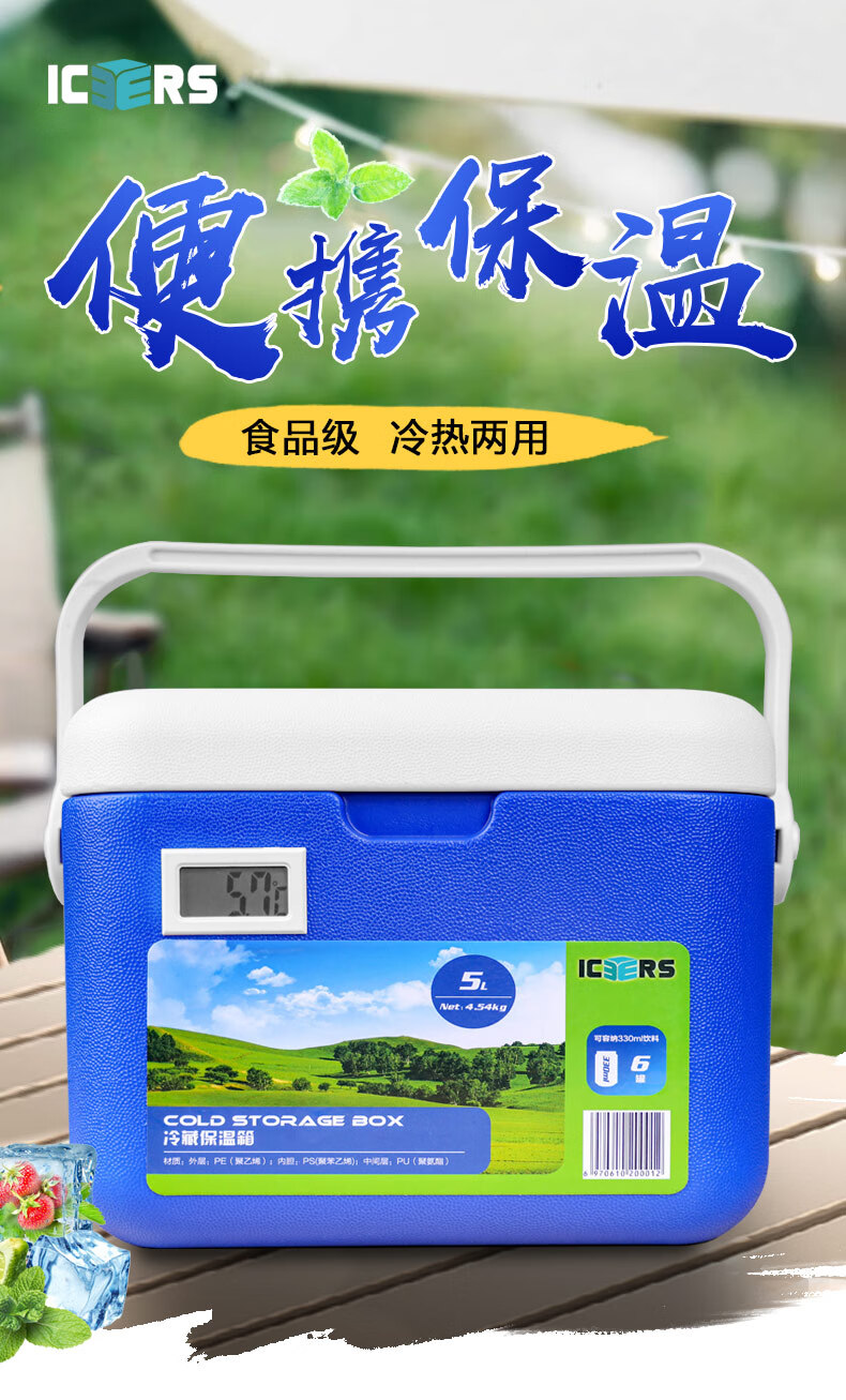 ICERS Eisens 5L outdoor PU insulated box, household vehicle-mounted pharmaceutical insulin refrigerator, breast milk cold chain transport box 5L blue and white (6 sides PU material) comes with 1 ice box + 4 ice bags with temperature display
