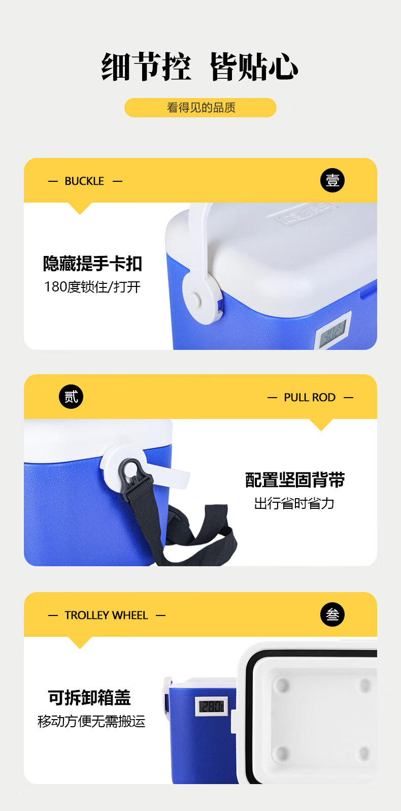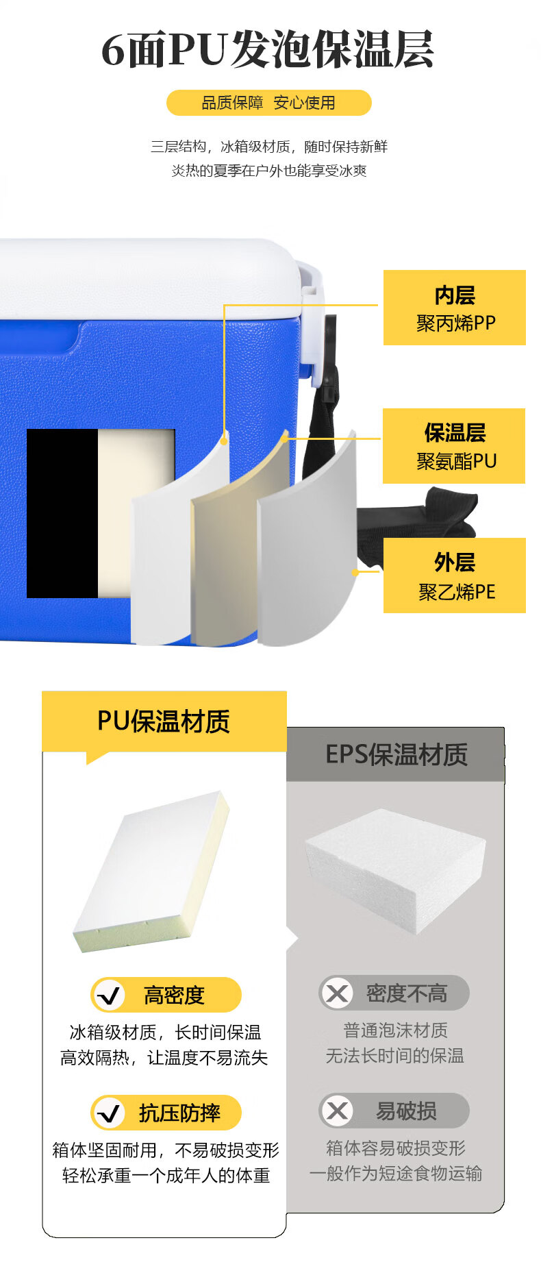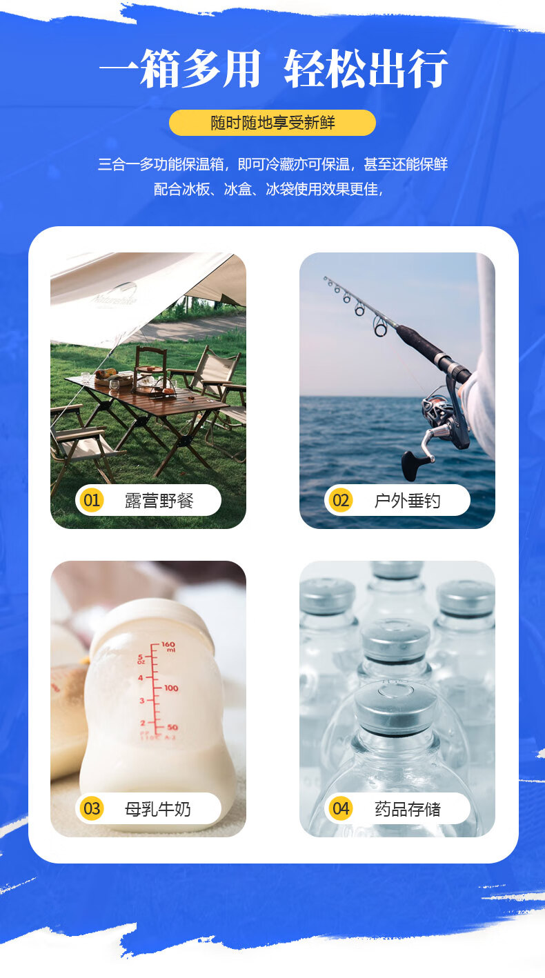 ICERS Eisens 5L outdoor PU insulated box, household vehicle-mounted pharmaceutical insulin refrigerator, breast milk cold chain transport box 5L blue and white (6 sides PU material) comes with 1 ice box + 4 ice bags with temperature display