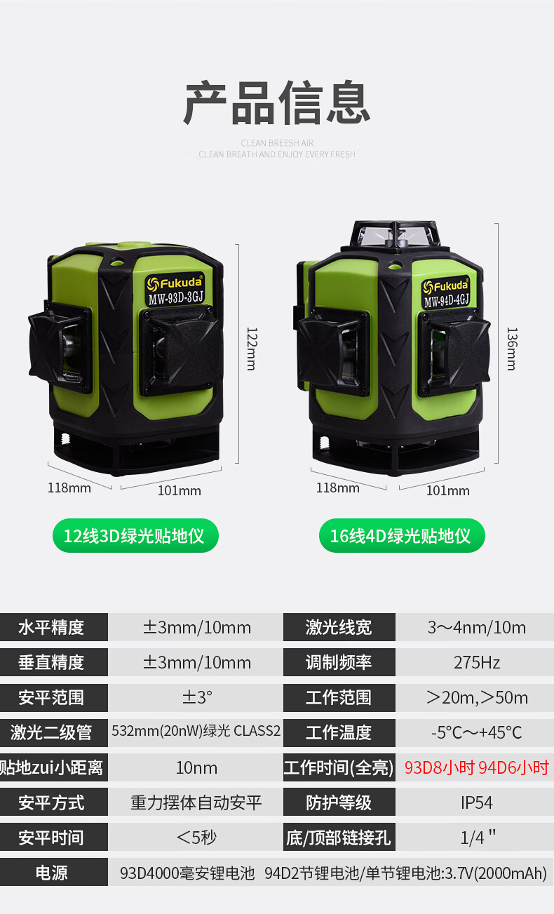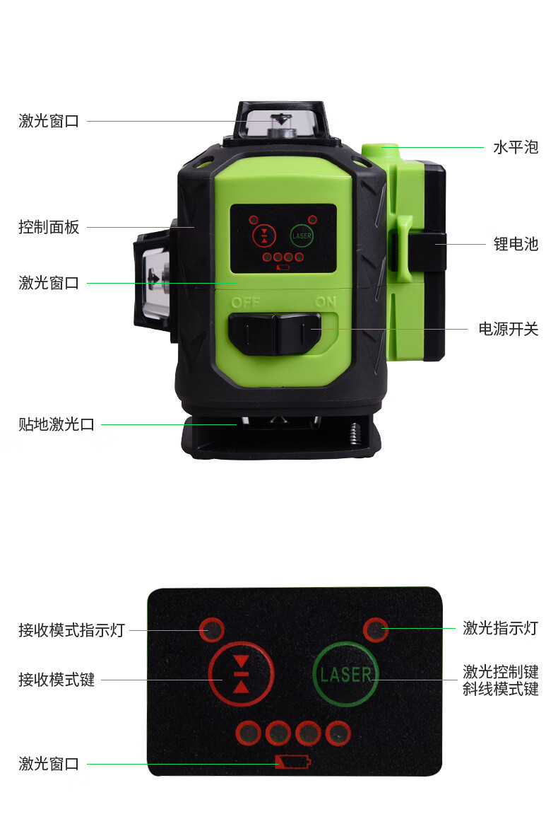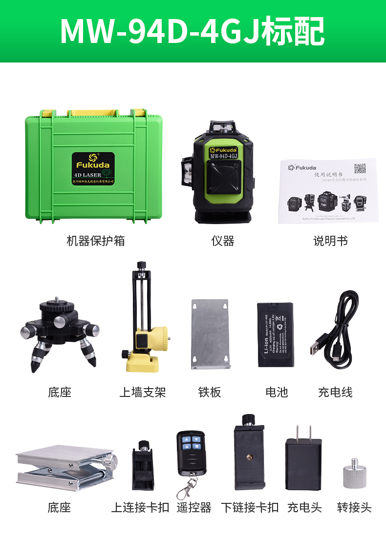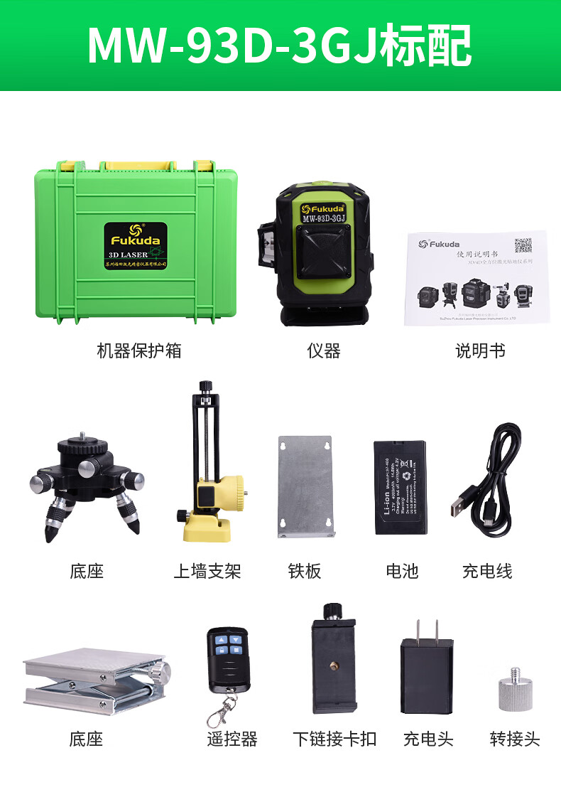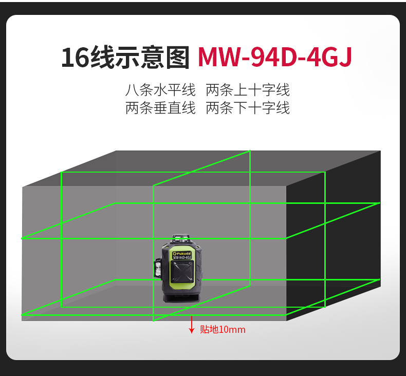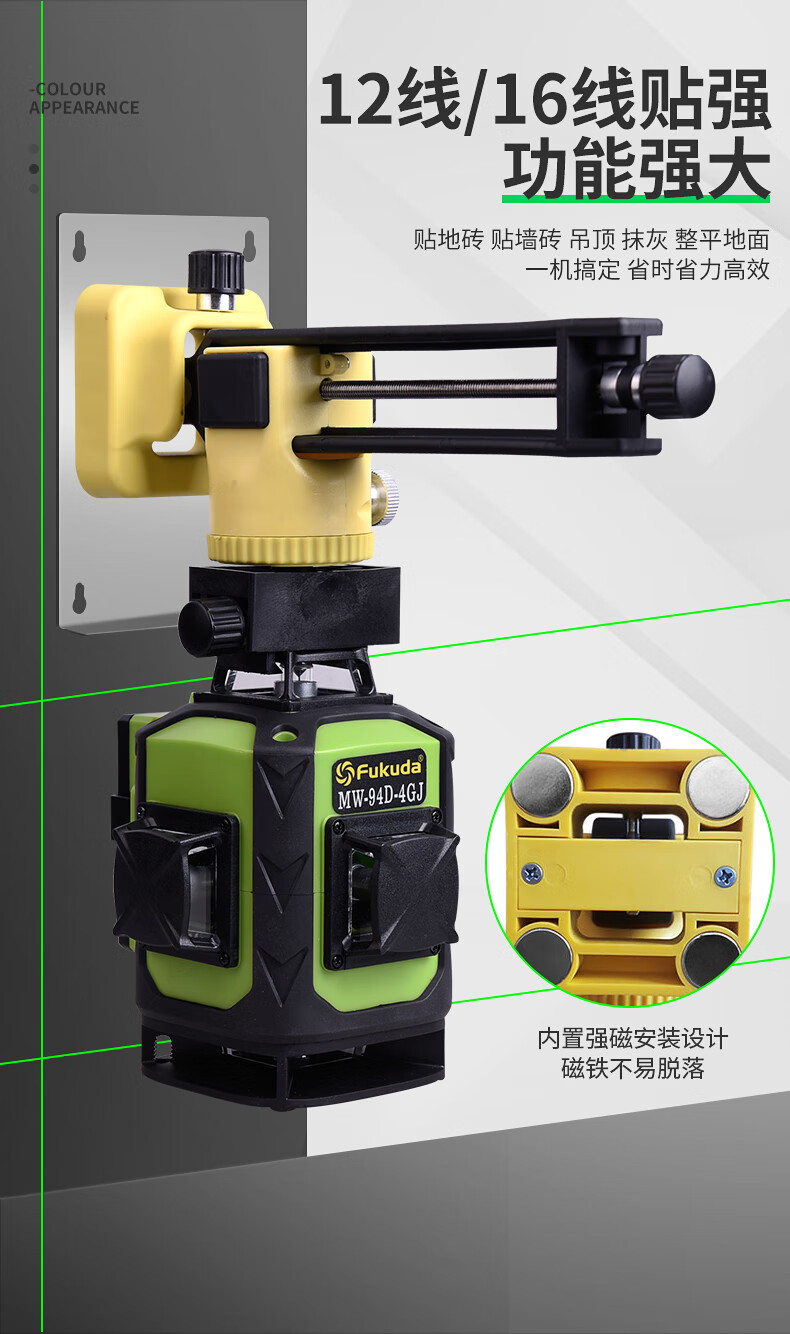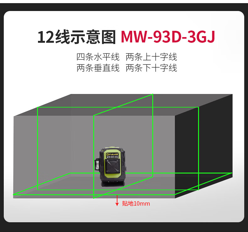 Fukuda floor-mounted wall level 12-line plastering wall infrared level meter laser leveling meter thin line strong light 12-line green light wall-to-ground all-in-one machine