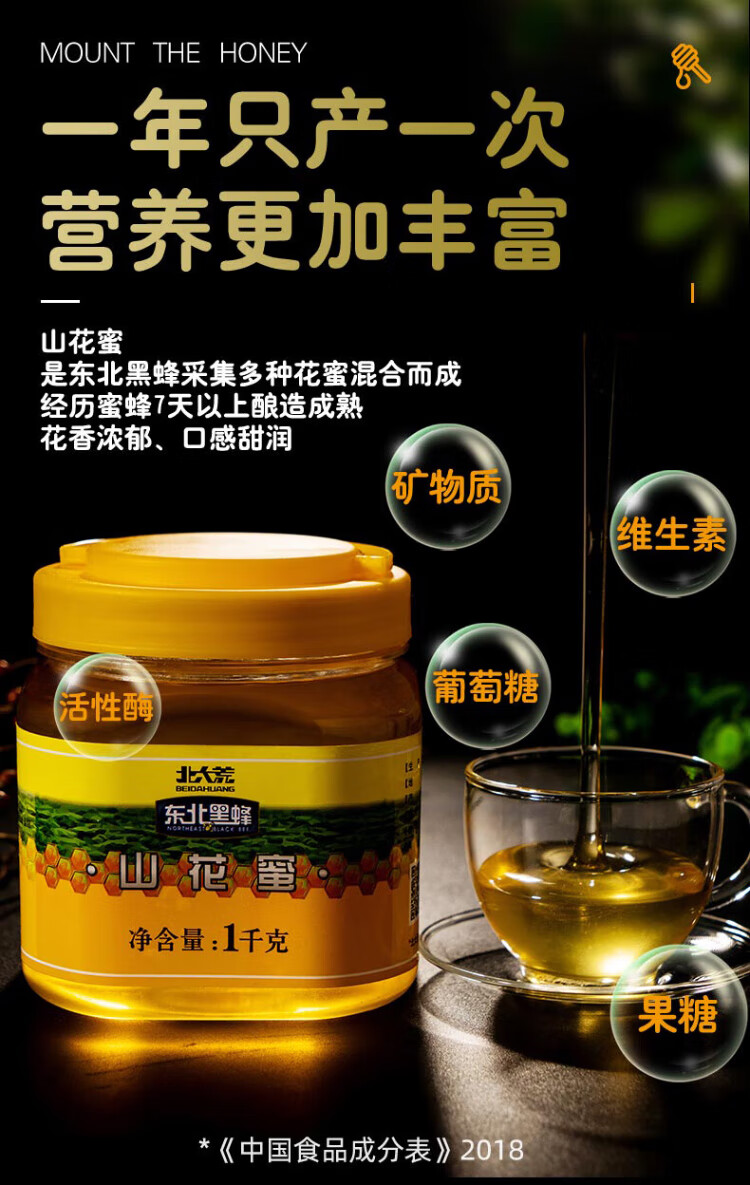 Beidahuang Honey, Northeastern Black Bee, Mountain Flower Honey 1kg, Hundred Flower Honey, 2kg Wild Flower Honey, BBQ Milk Bread Companion