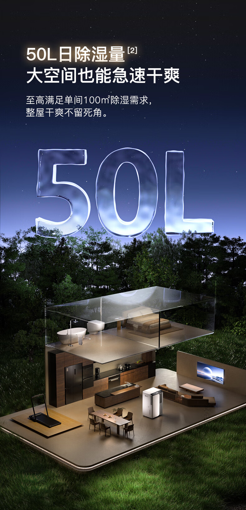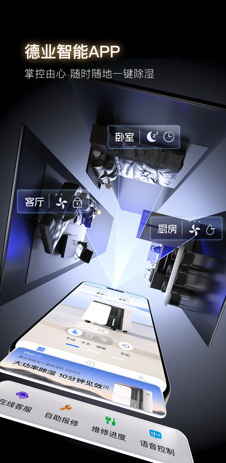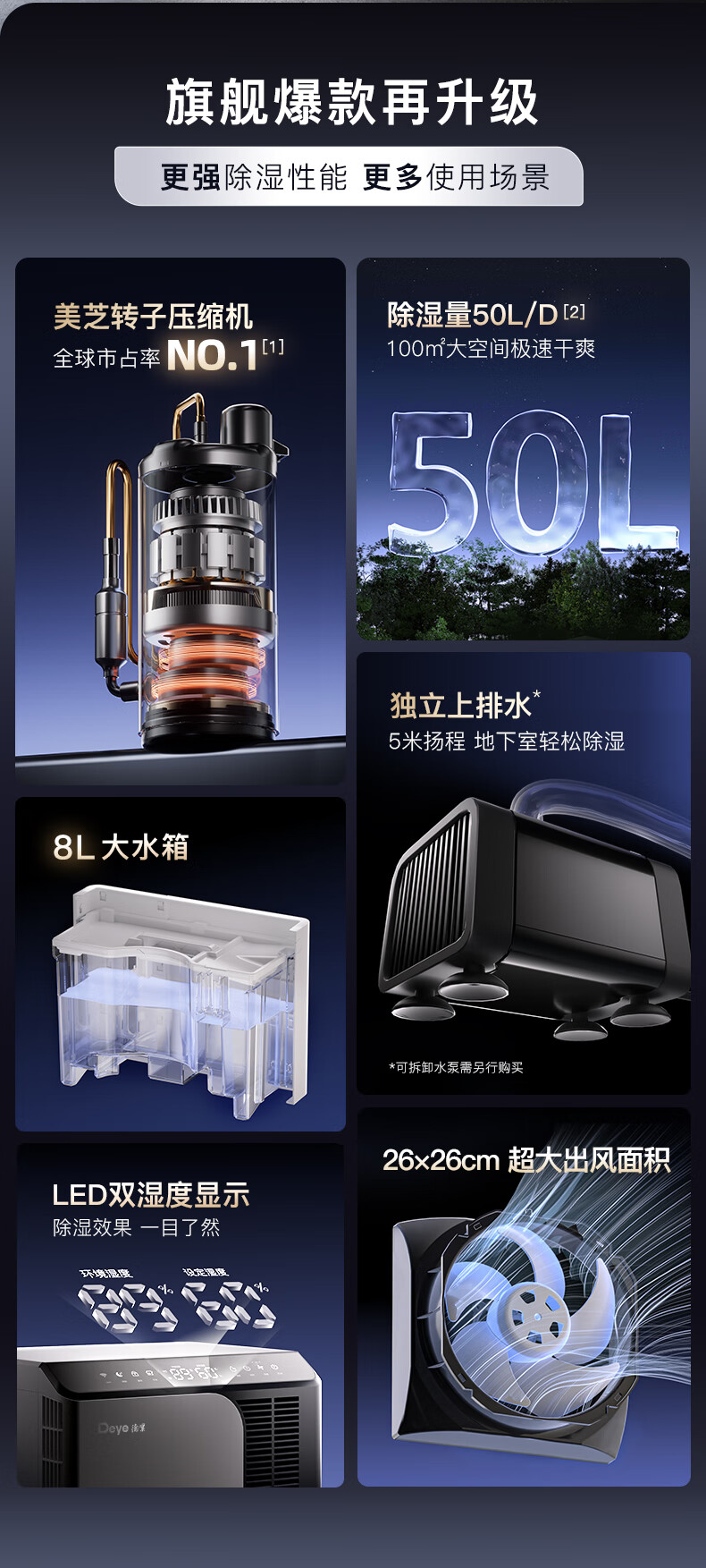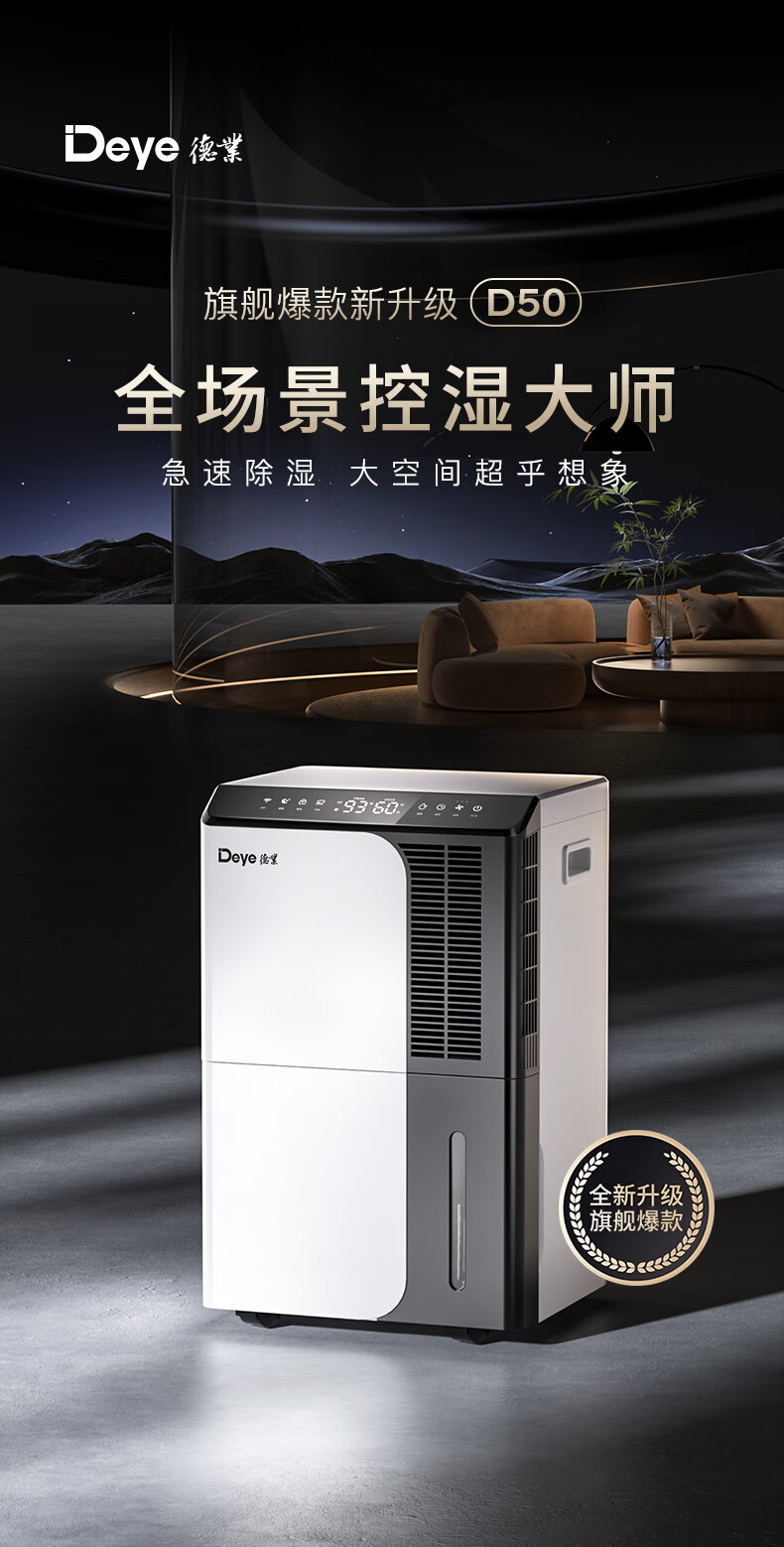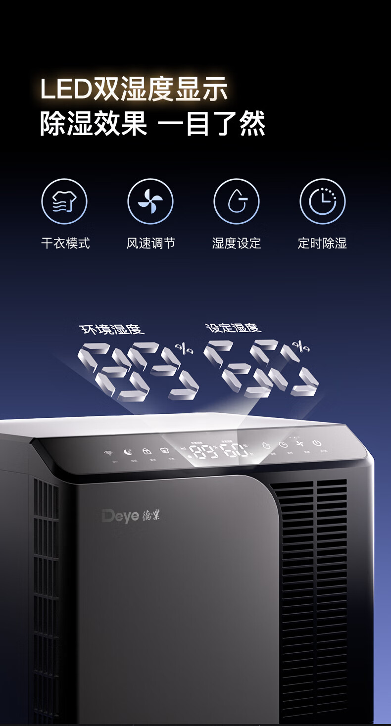Deye dehumidifier/dehumidifier, dehumidification capacity 50 liters/day, household basement duplex villa, commercial high-power industrial moisture absorption machine, mobile phone intelligent control DYD-D50A3