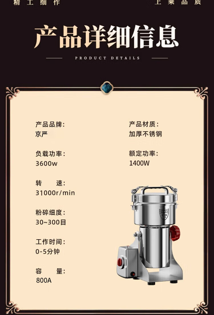 Jingyan grinder ultra-fine grinder commercial high-power grinder Chinese medicine multi-function grinder large-capacity crusher 800a 304 stainless steel pure copper motor