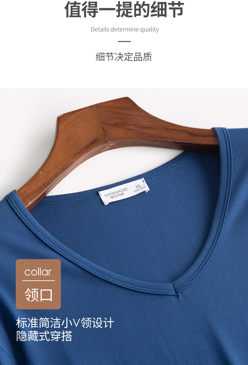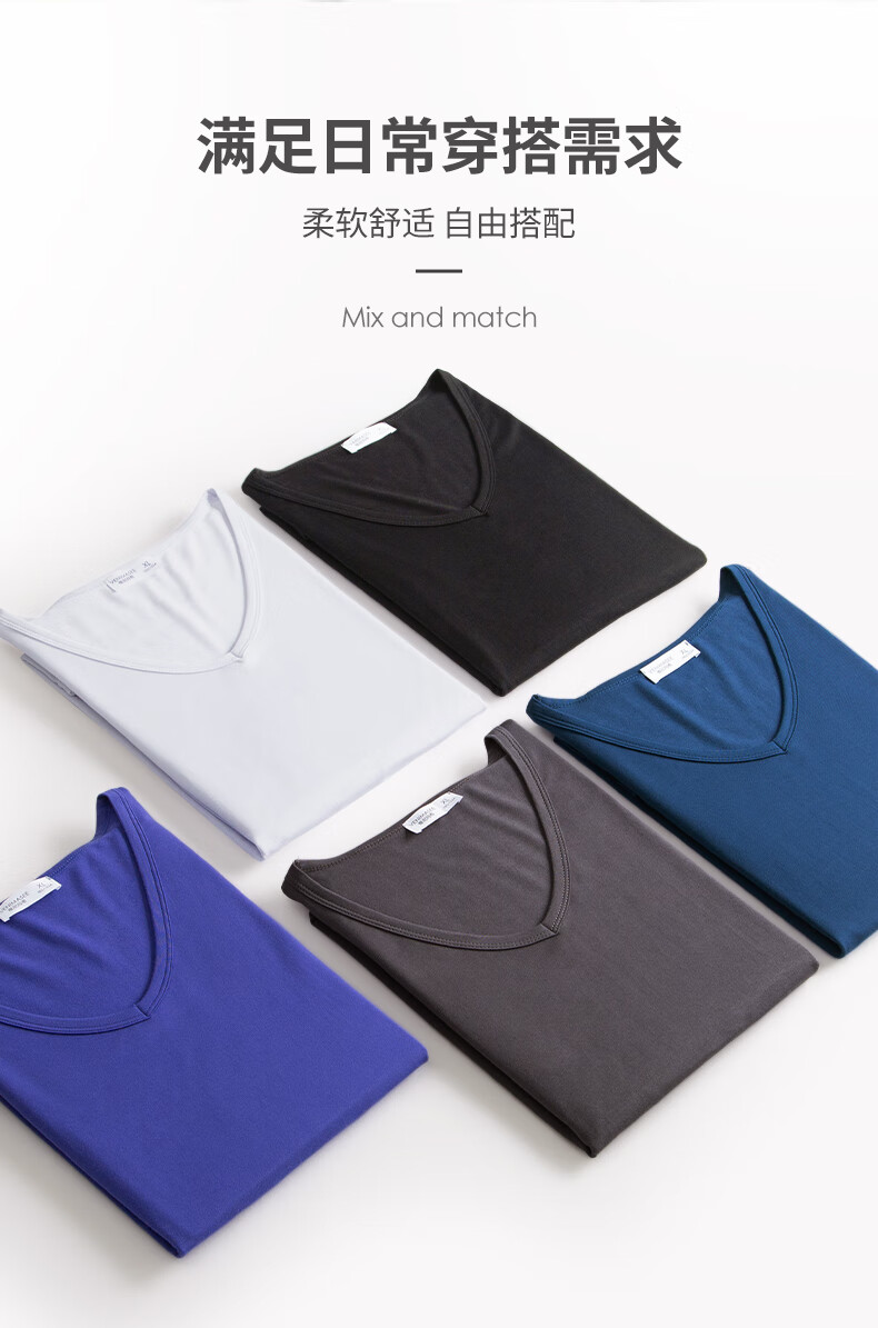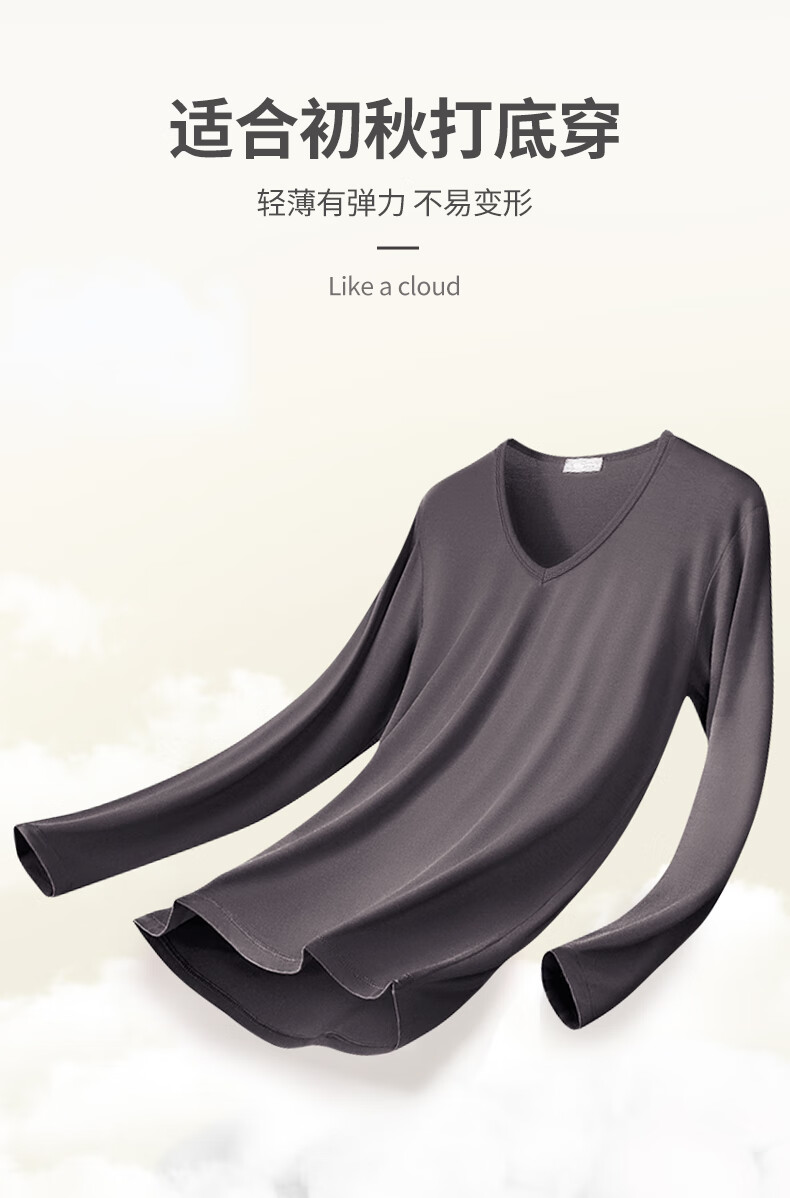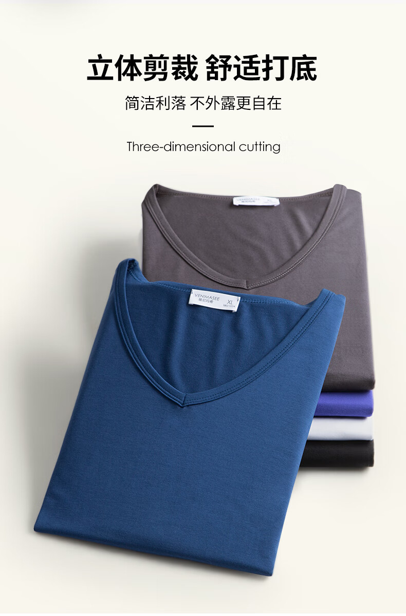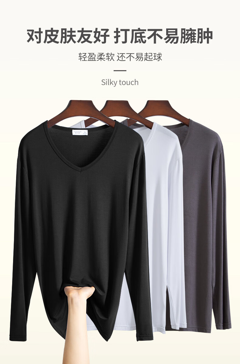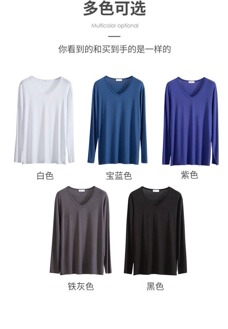 Vinimaxi 2 pieces of men's base layer thin autumn clothing single piece ultra-thin underwear basic close-fitting base layer long-sleeved V-neck T-shirt for men white + black L recommended 130-150 catties