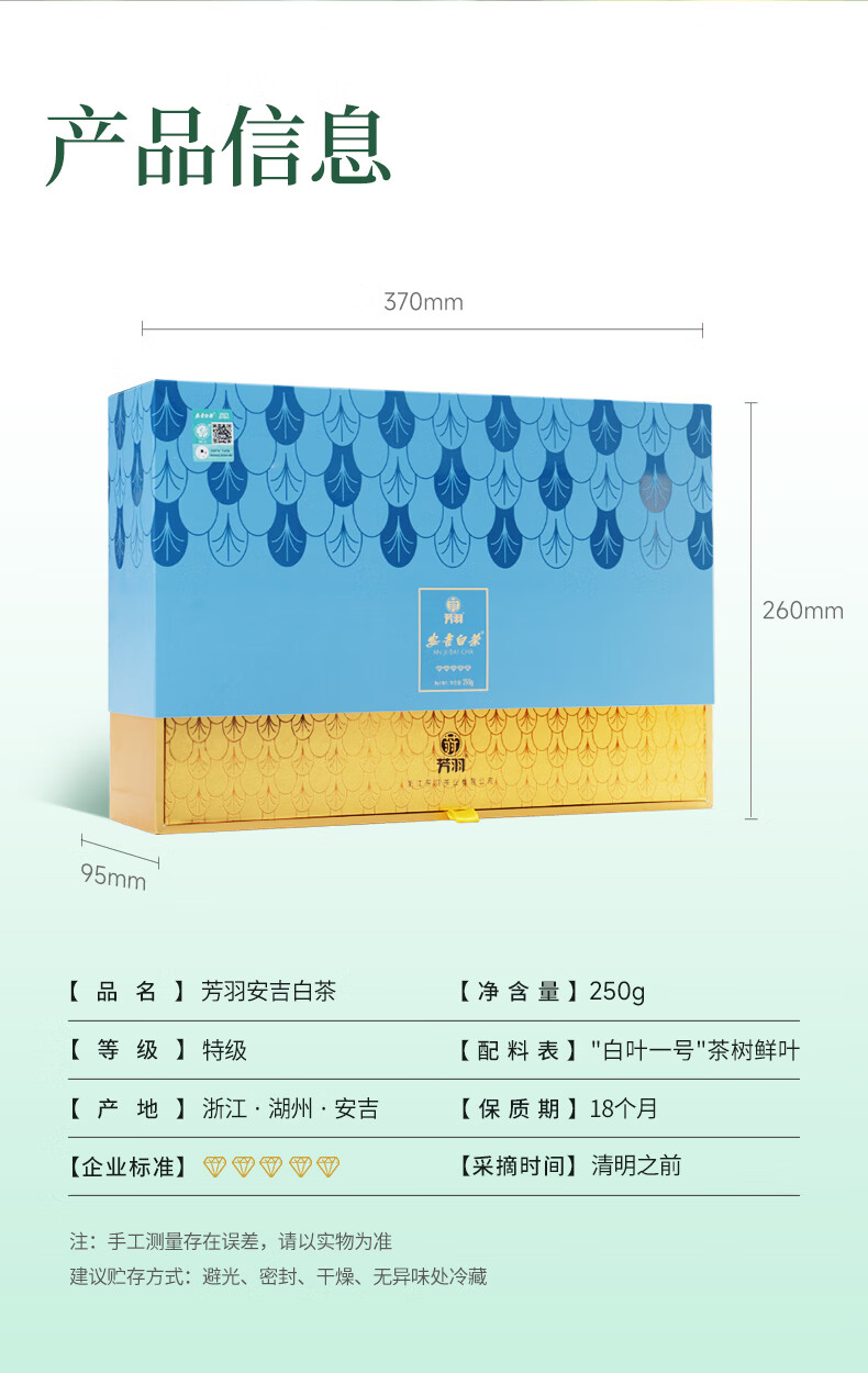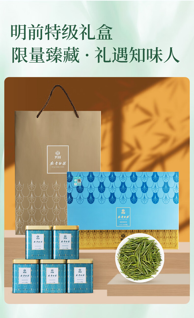 Fangyu Anji White Tea Premium Five Diamond Mingqian Green Tea 250g New Tea New Year's Gift Tea Gift Box Tea