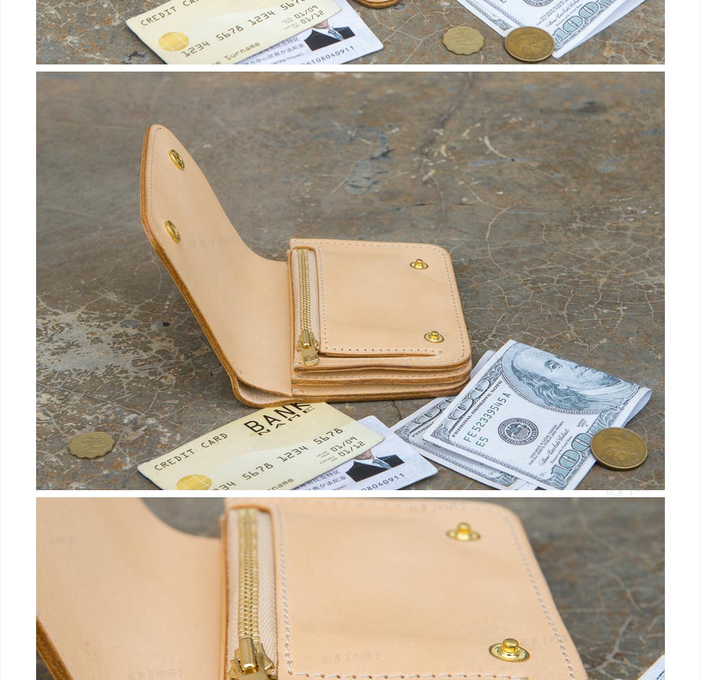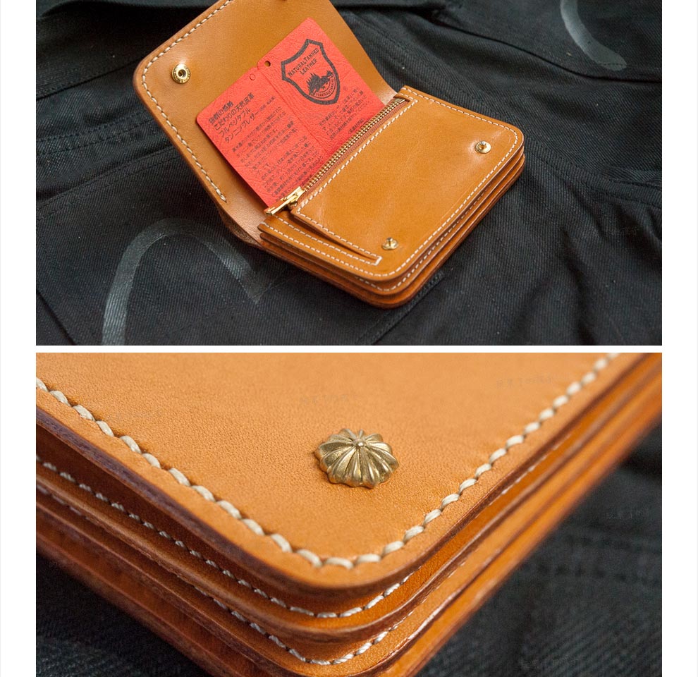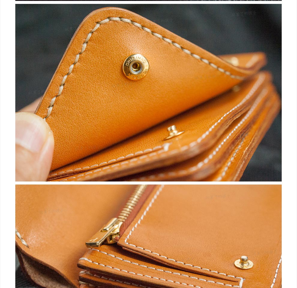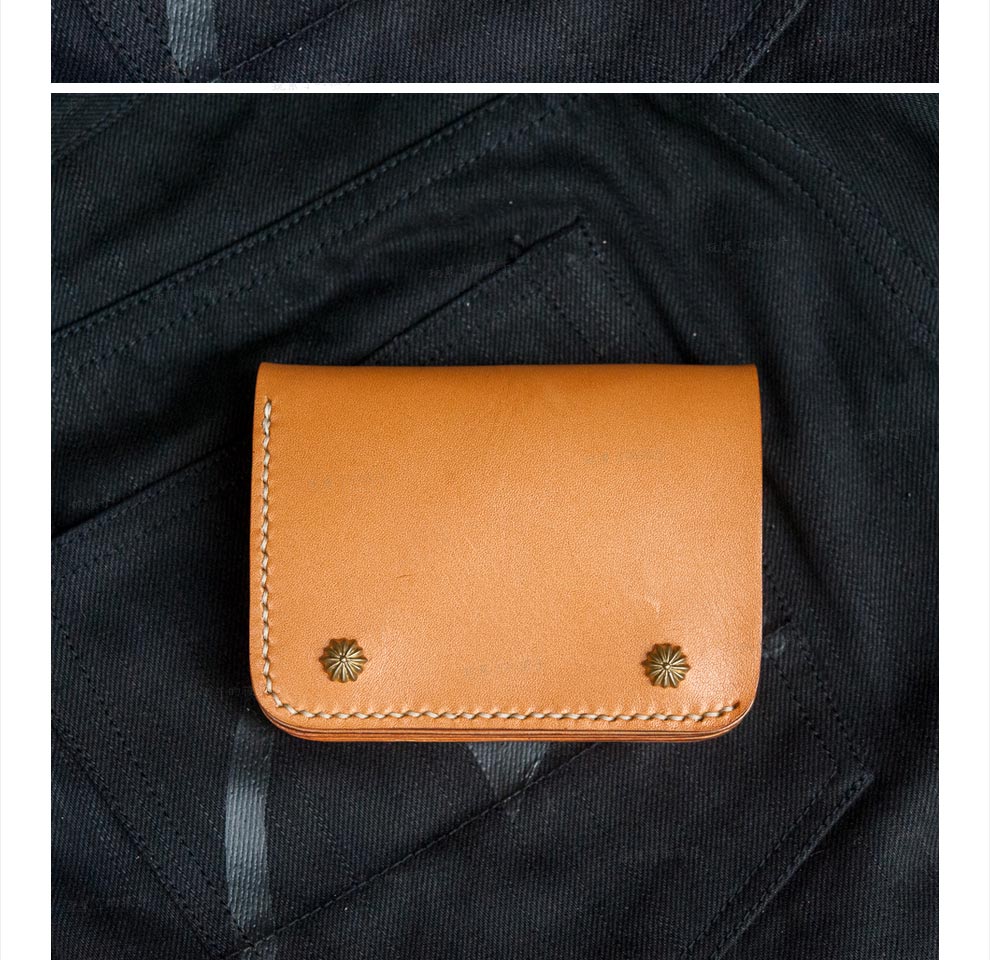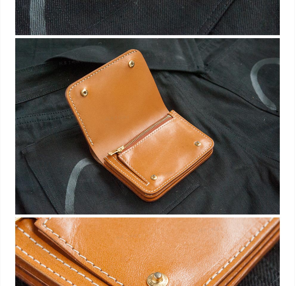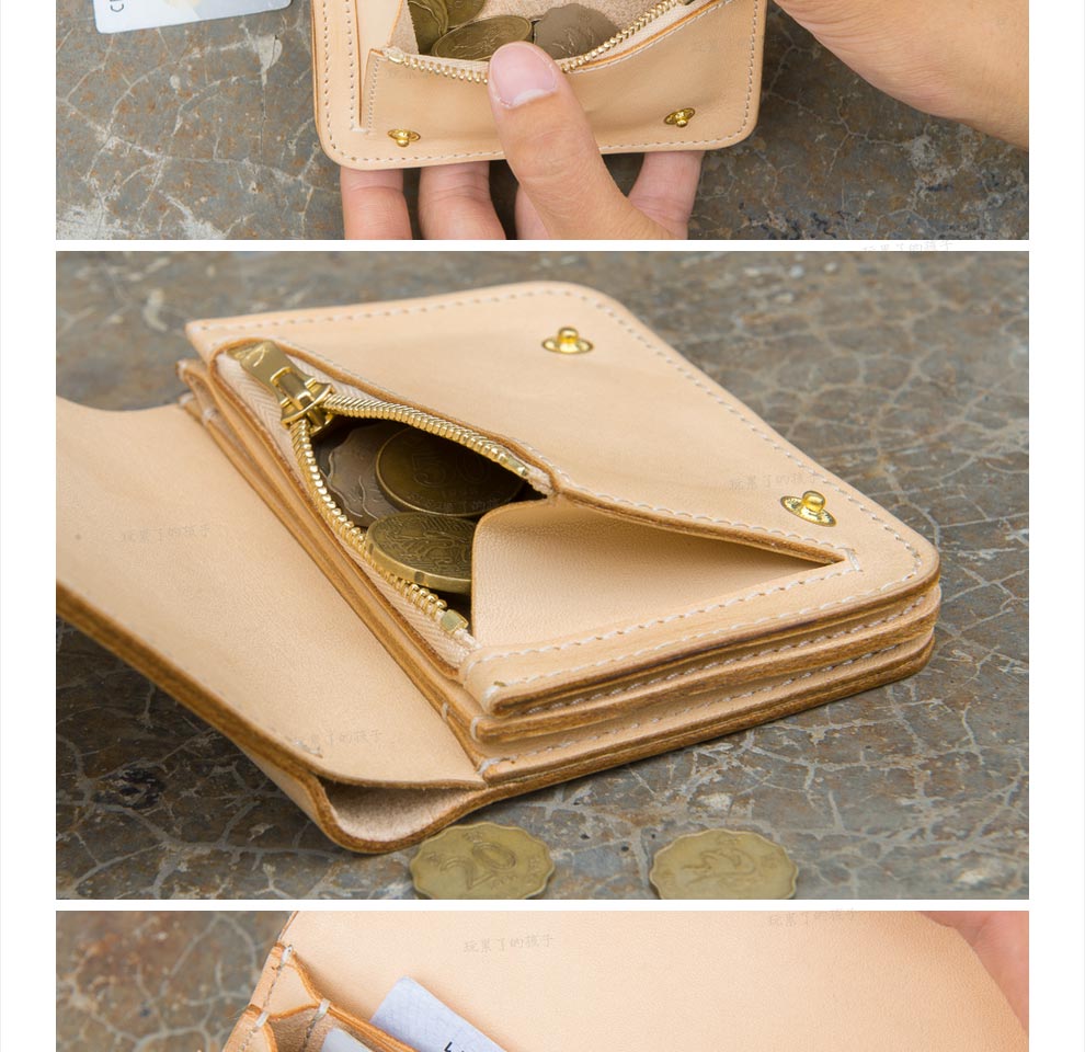 Children who are tired of playing Caibu series Simple Doctrine Handmade vegetable tanned cowhide short unisex wallet Tochi wood leather-khaki 1#