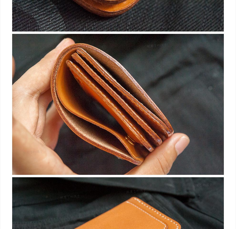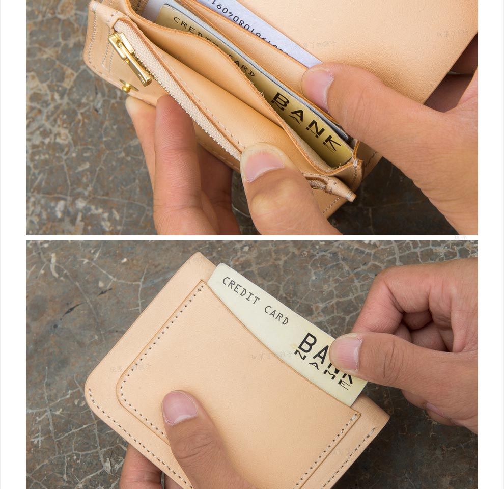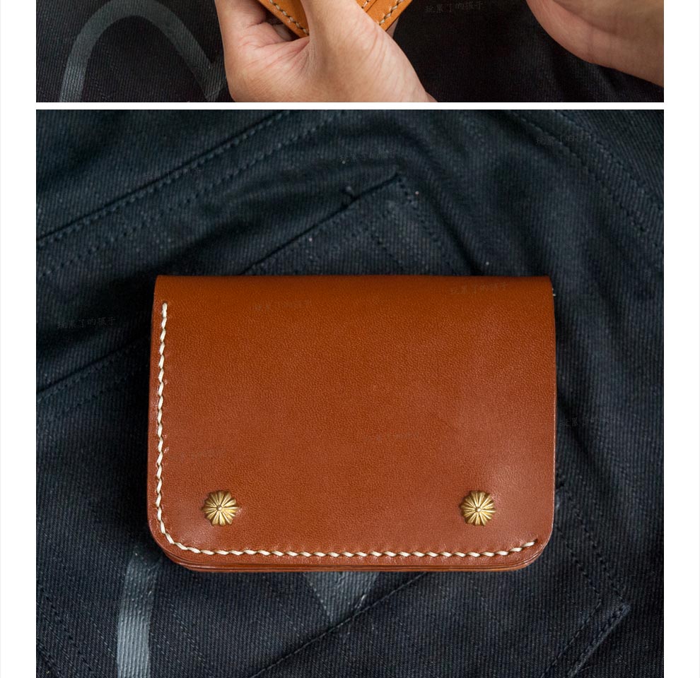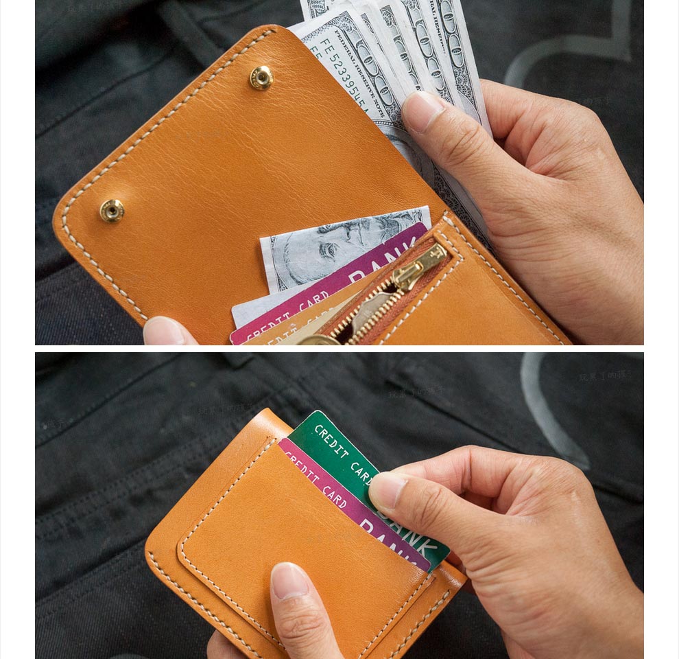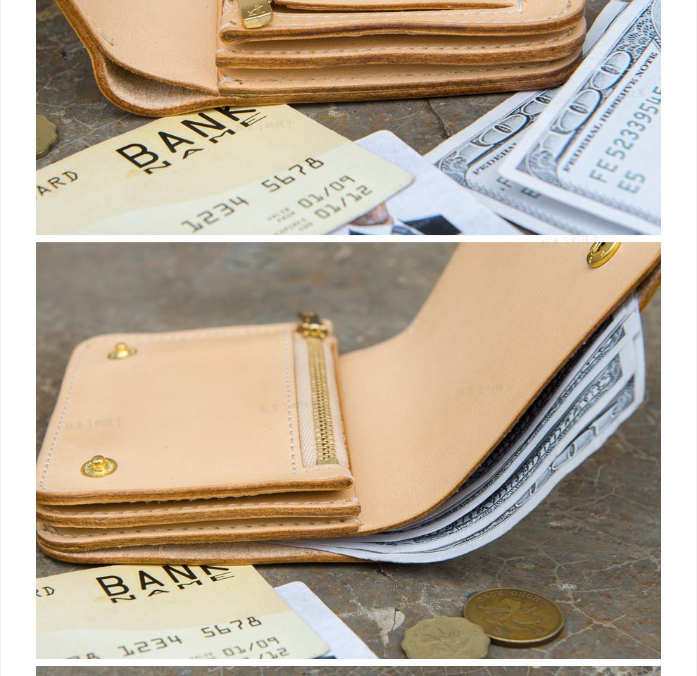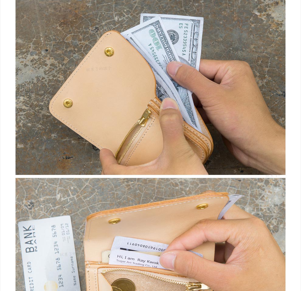 Children who are tired of playing Caibu series Simple Doctrine Handmade vegetable tanned cowhide short unisex wallet Tochi wood leather-khaki 1#