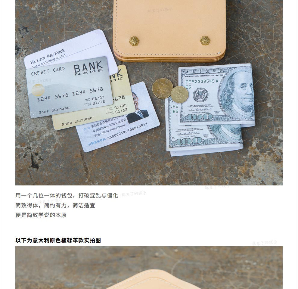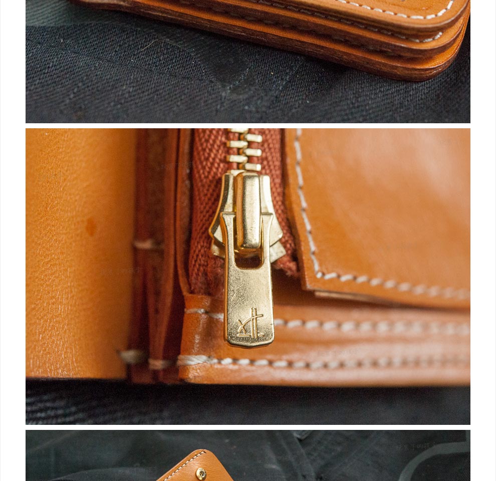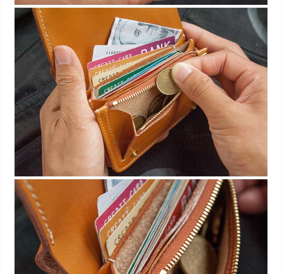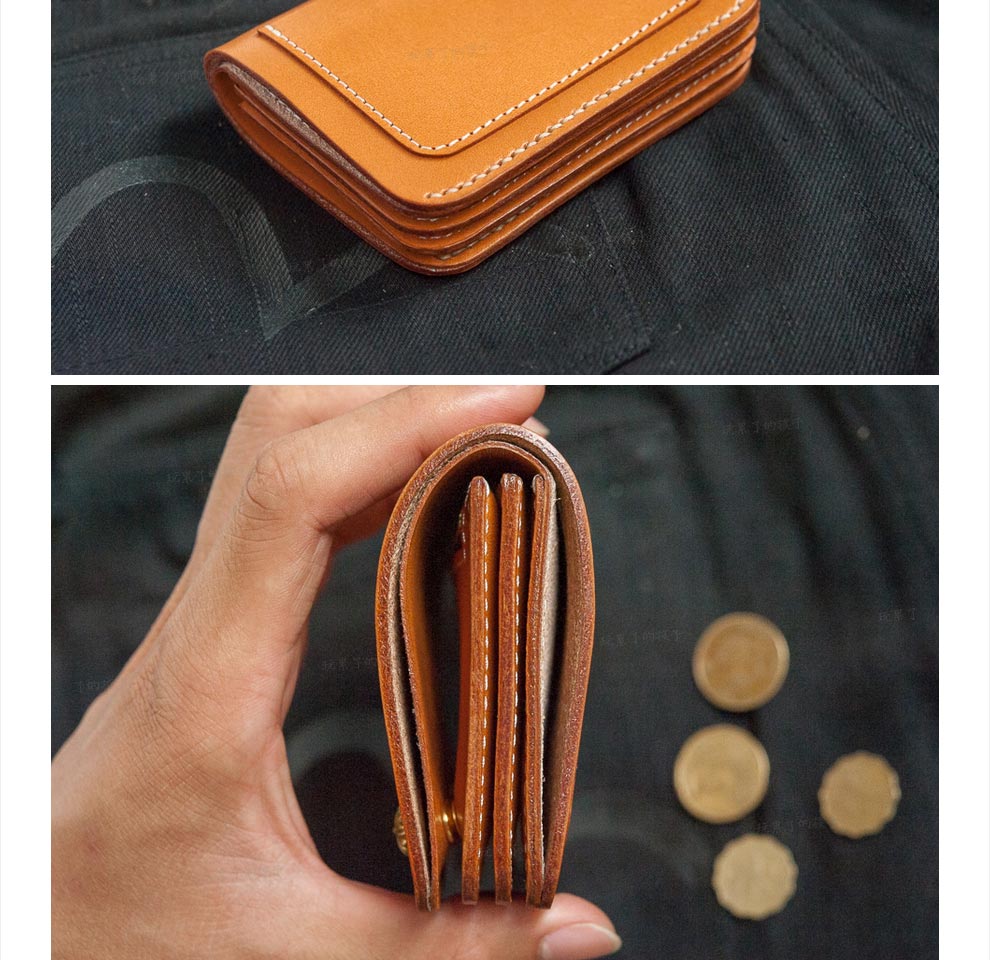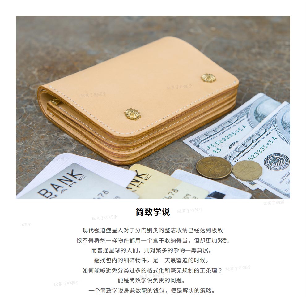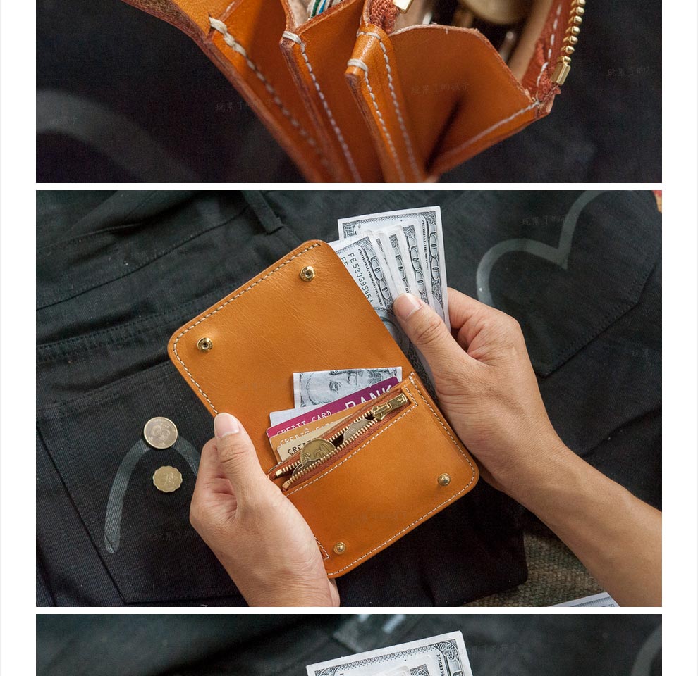 Children who are tired of playing Caibu series Simple Doctrine Handmade vegetable tanned cowhide short unisex wallet Tochi wood leather-khaki 1#