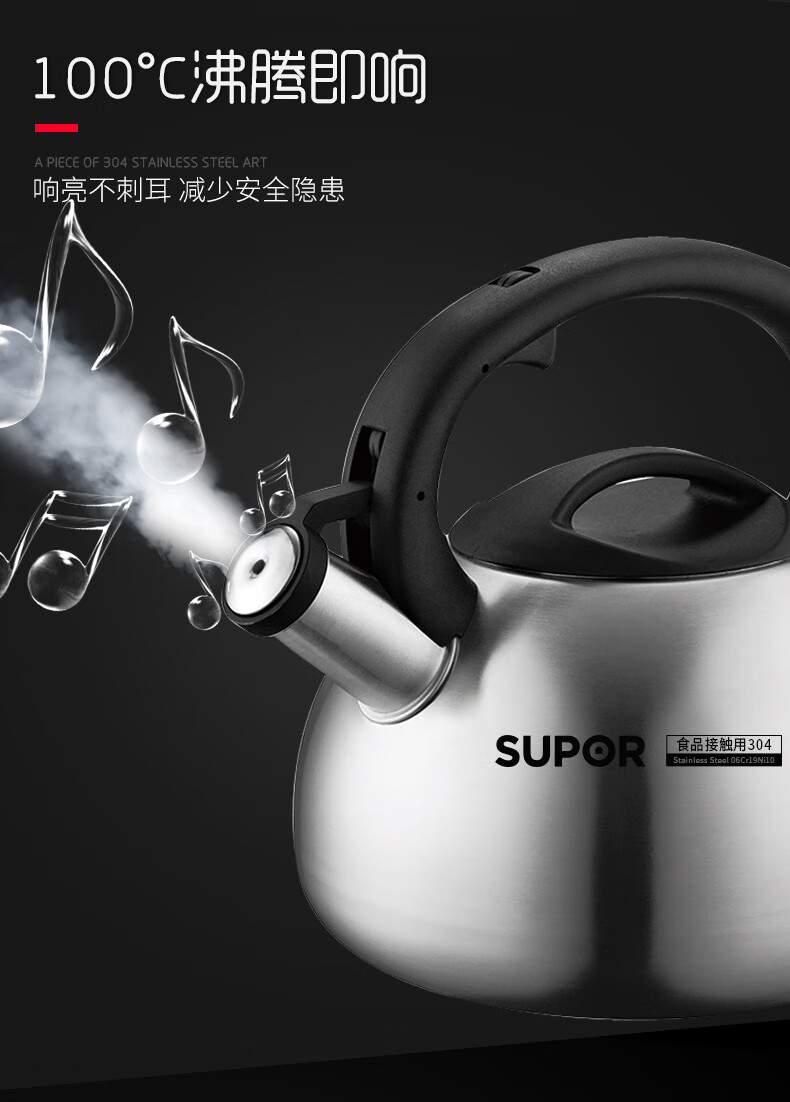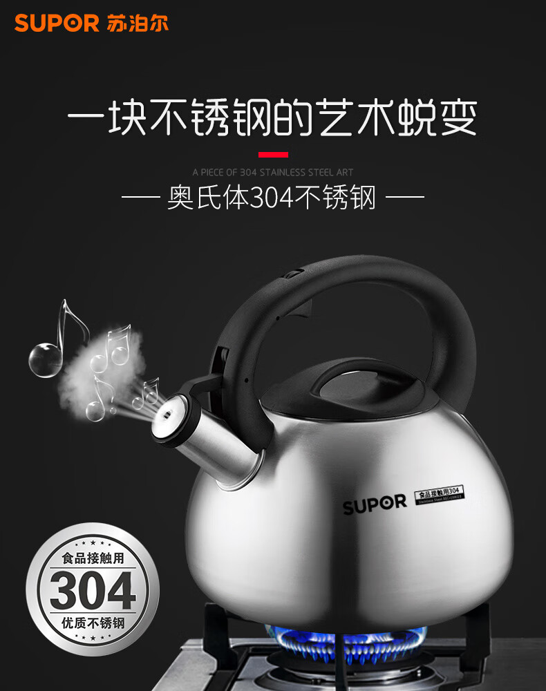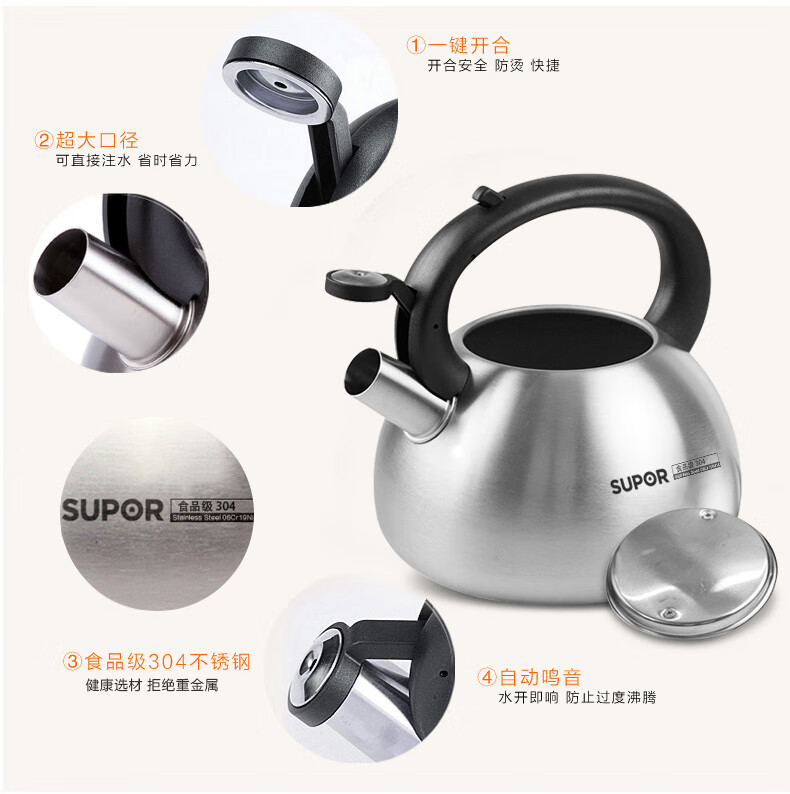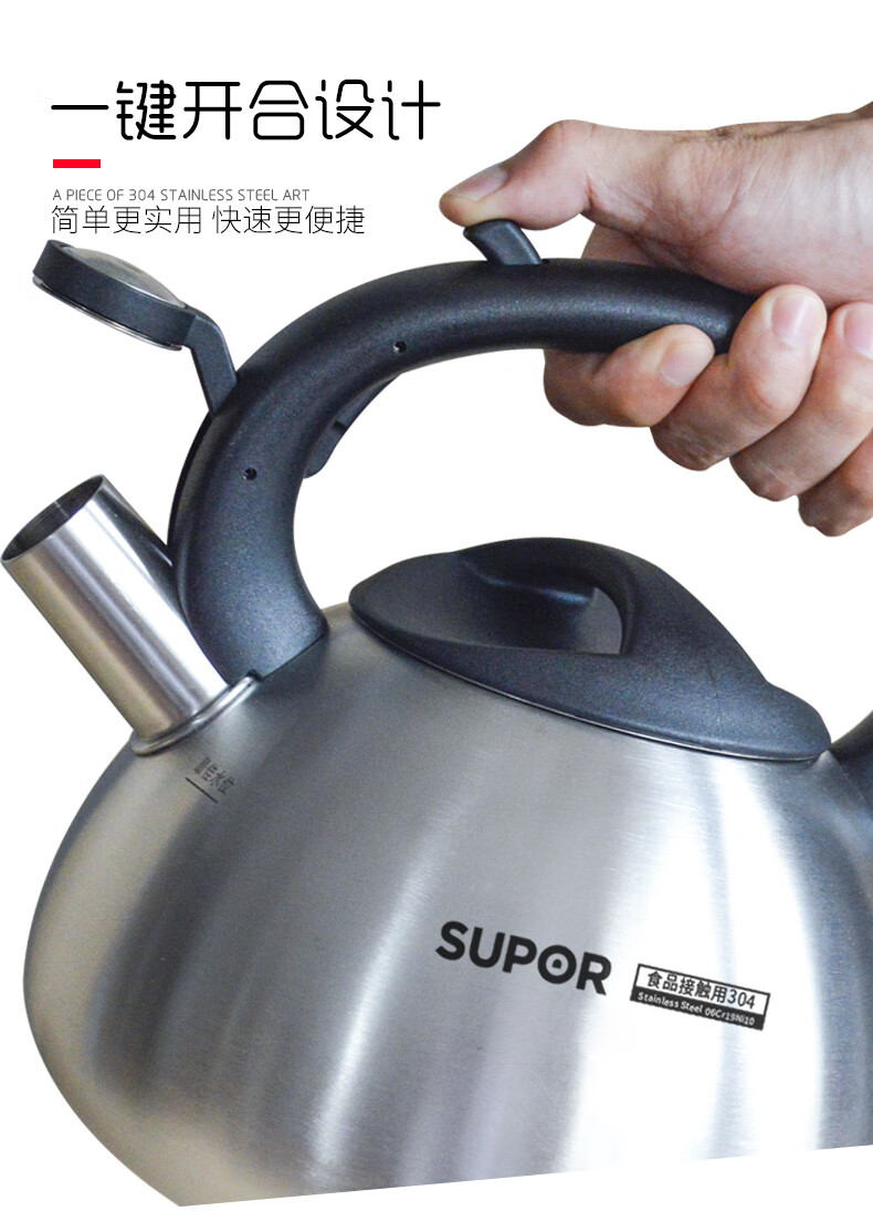 SUPOR kettle 304 material stainless steel whistle kettle for boiling kettle, general purpose for gas induction cooker SS35N1 3.5L