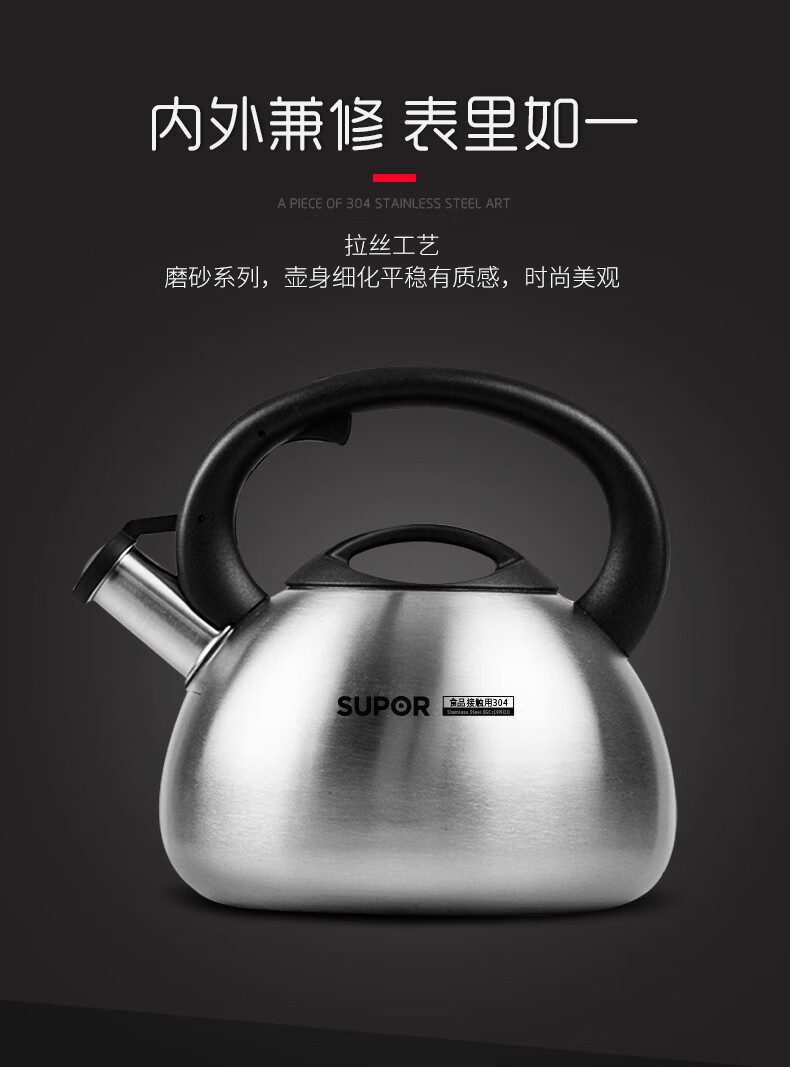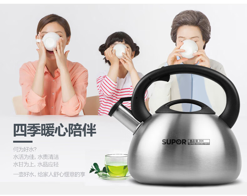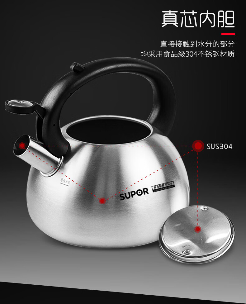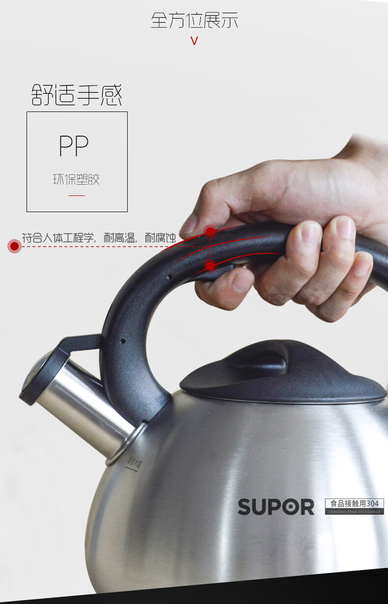SUPOR kettle 304 material stainless steel whistle kettle for boiling kettle, general purpose for gas induction cooker SS35N1 3.5L