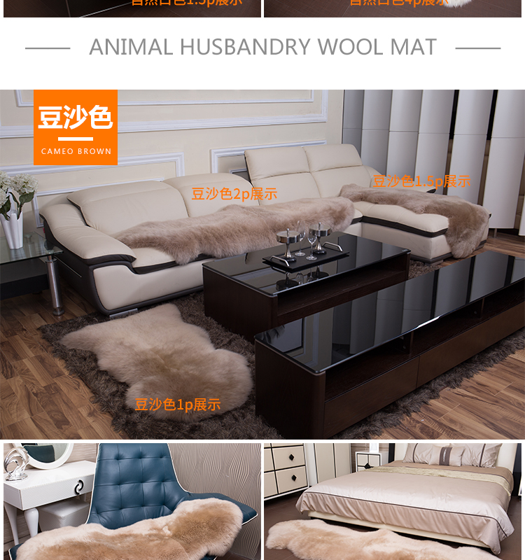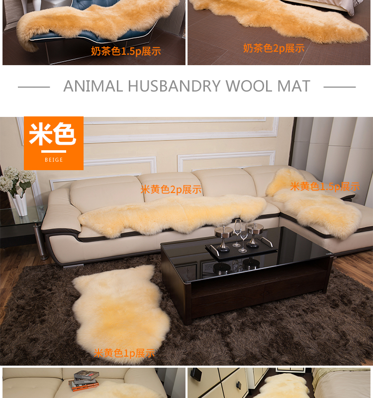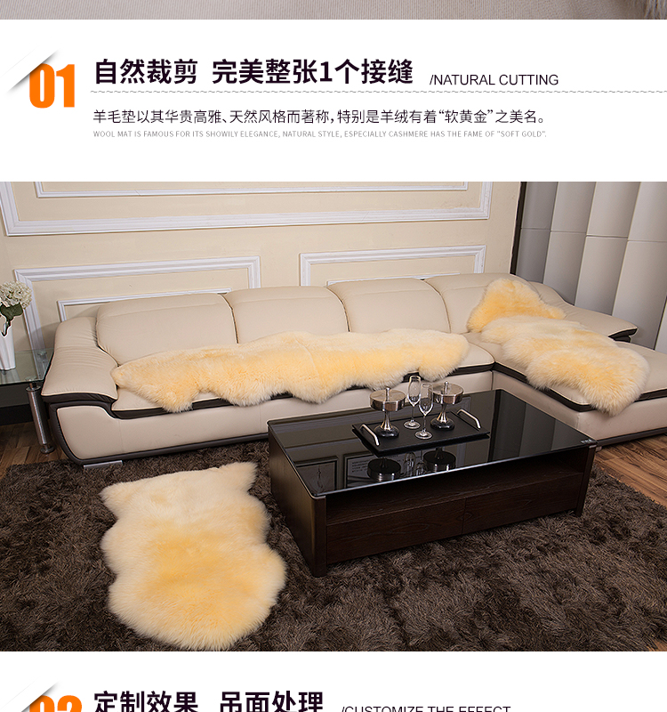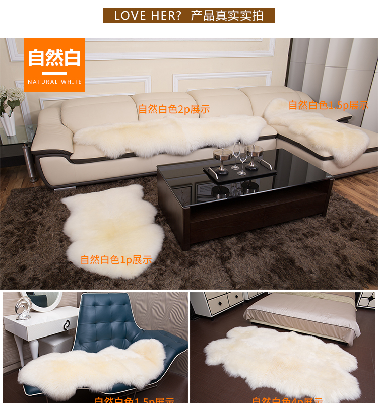 Munuo Australian wool carpet bedroom whole sheepskin wool bay window blanket fur integrated carpet sheepskin cushion natural white Australia 1p70*110cm