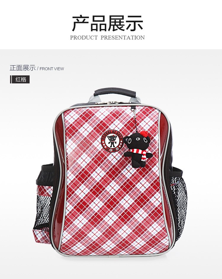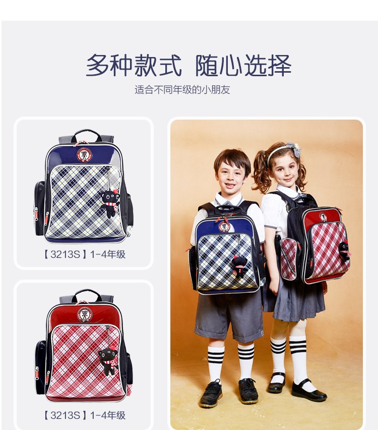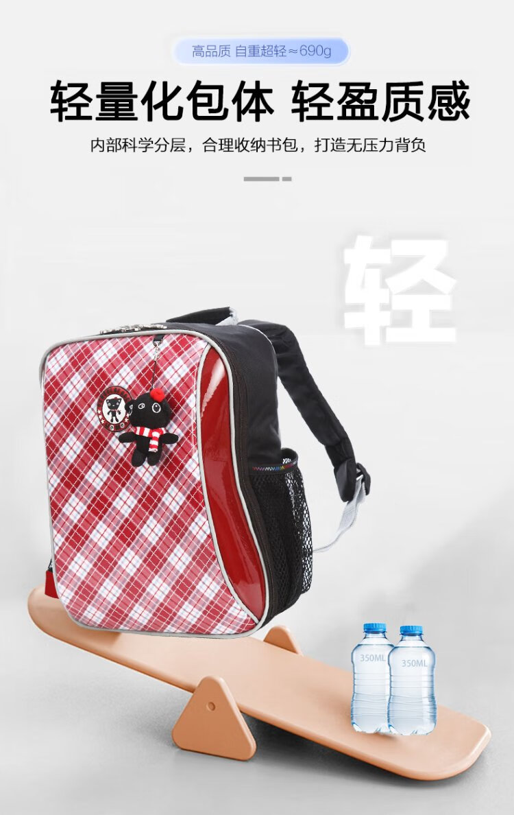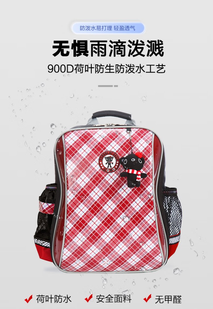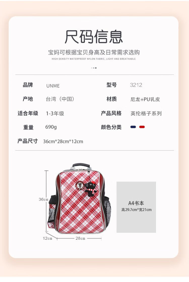 UnMe Taiwan unme primary school boy and girl first grade school bag male 1-3-6 light waterproof children's backpack gift school bag 3212 red grid 1-3 grade small pendant + waist buckle