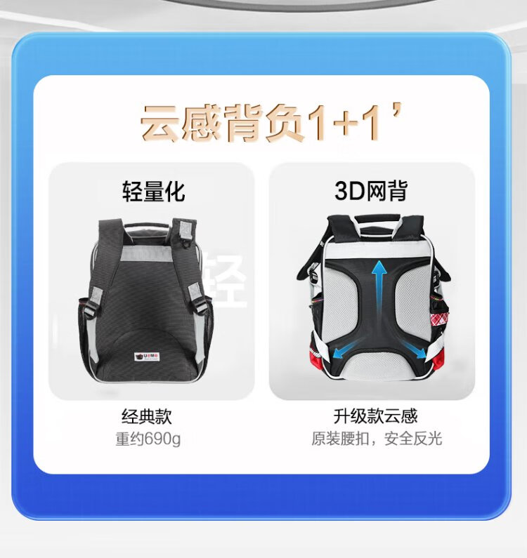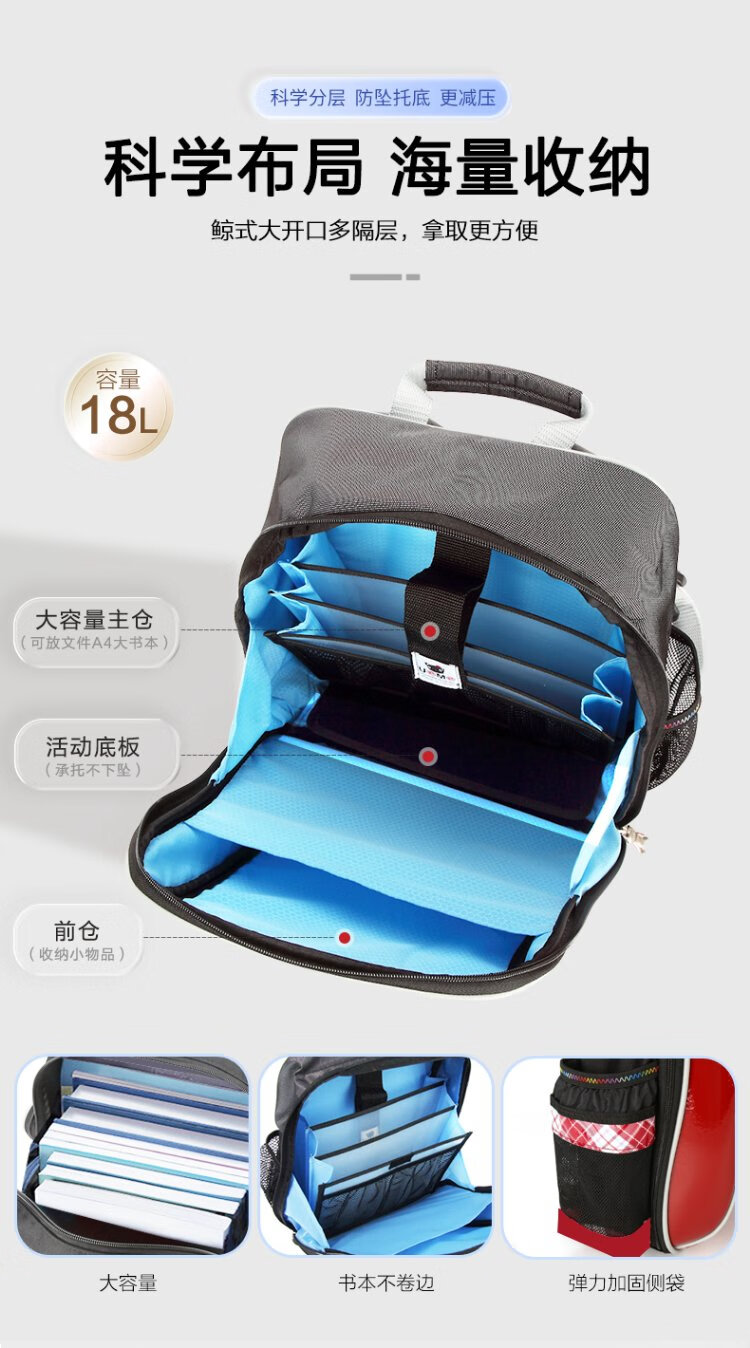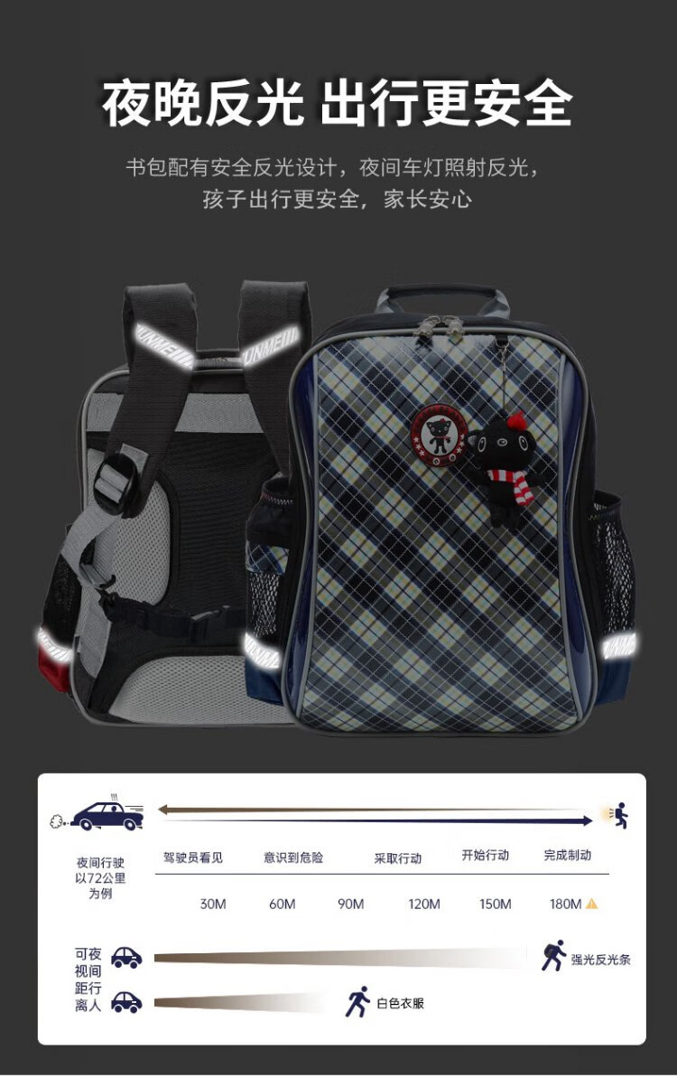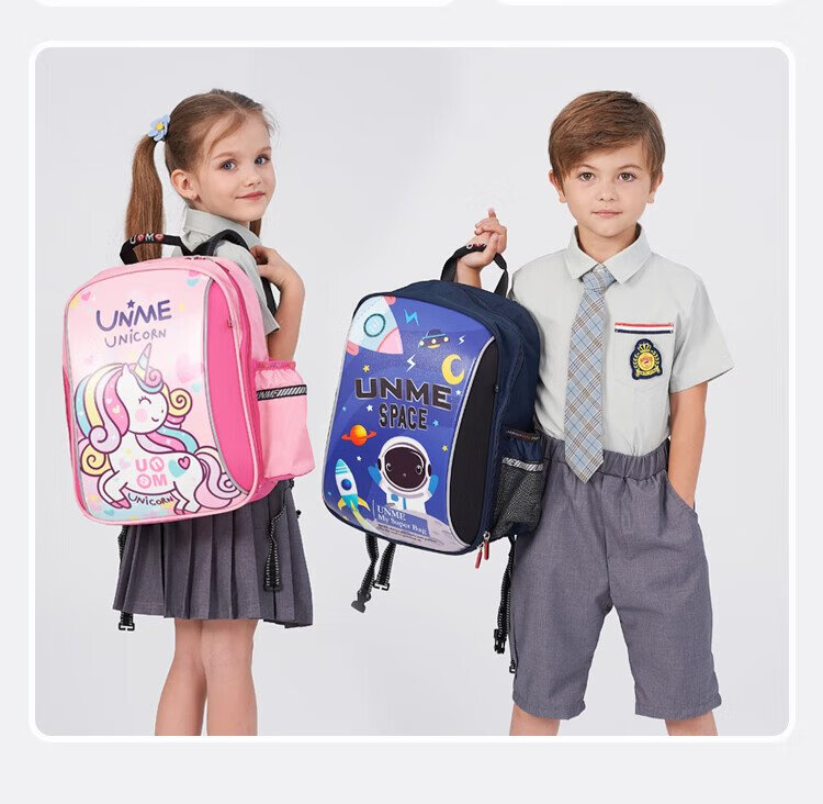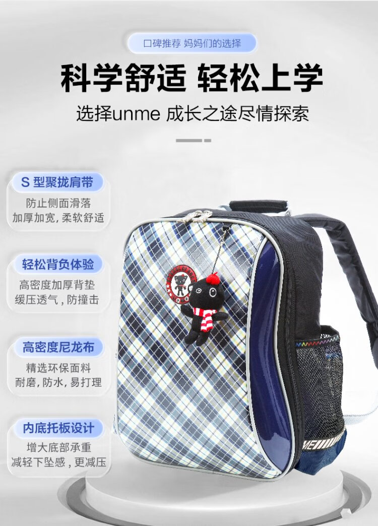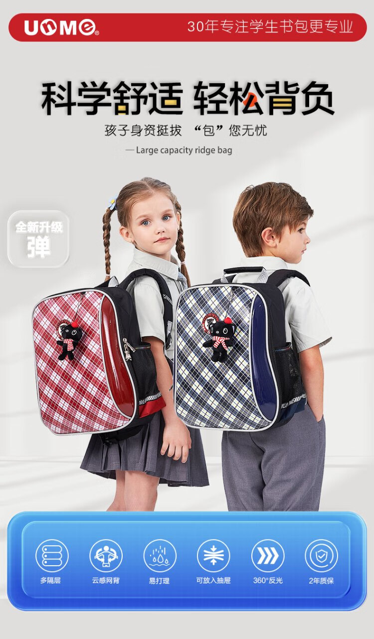 UnMe Taiwan unme primary school boy and girl first grade school bag male 1-3-6 light waterproof children's backpack gift school bag 3212 red grid 1-3 grade small pendant + waist buckle