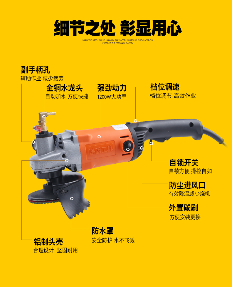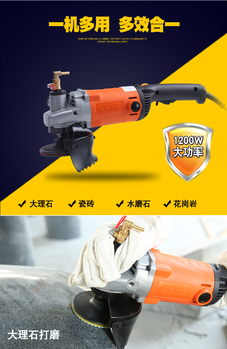 Sturdy water mill stone floor marble polishing machine water polishing machine water-injection cement floor floor polishing and leveling renovation high-power polishing machine light handheld adjustable speed 150 water mill (water outlet type)