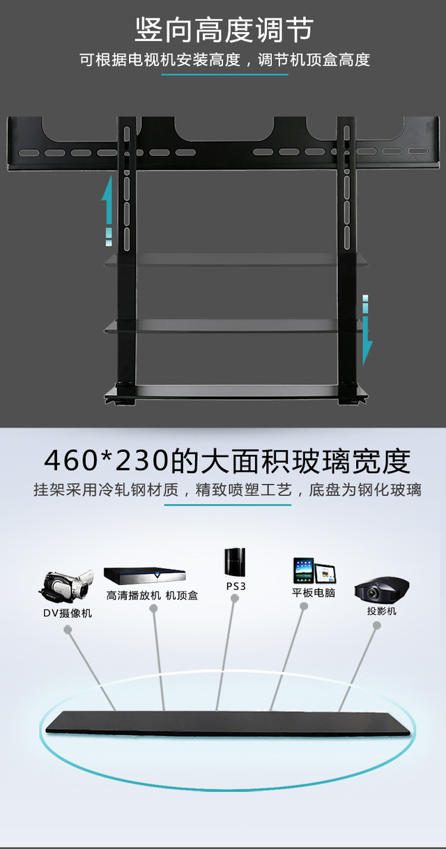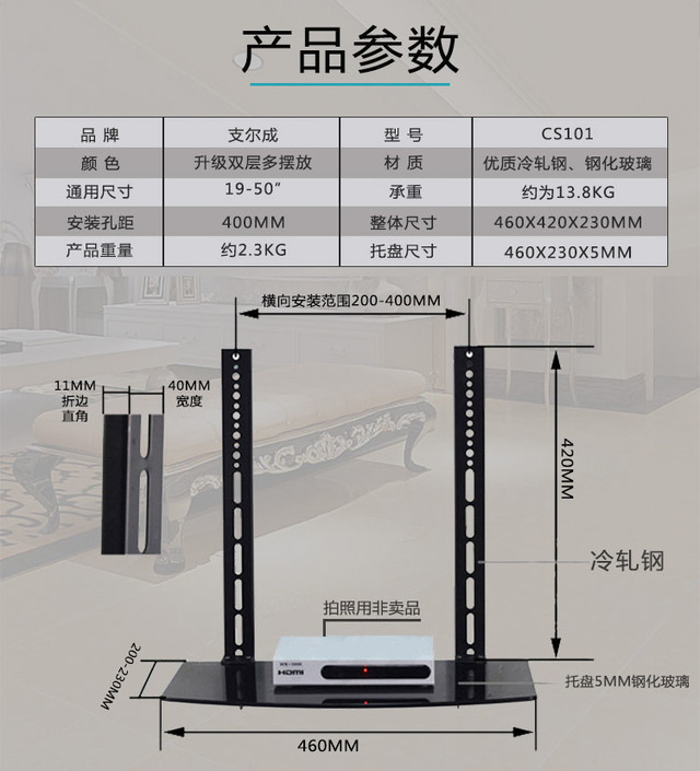 Zhiercheng set-top box rack storage rack, no punching, for TV set-top box bracket, old-fashioned large set-top box bracket, universal tempered glass, can be installed up and down, installed below