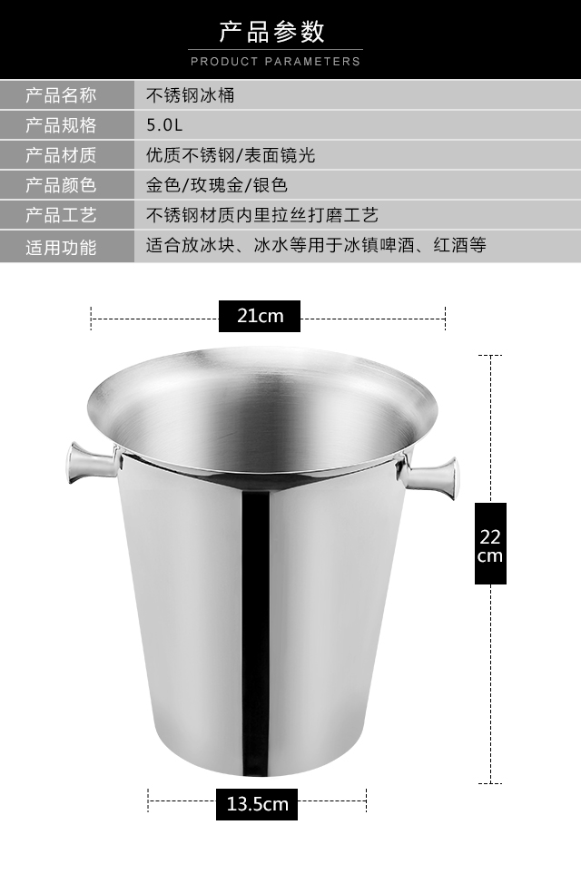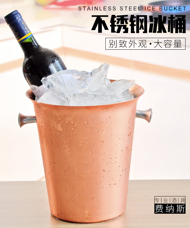 FEiNASi 304 stainless steel ice bucket bar home red wine beer champagne ice cube bucket creative fashion ice bucket binaural mirror silver ice bucket