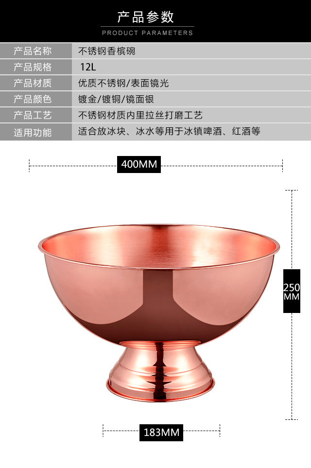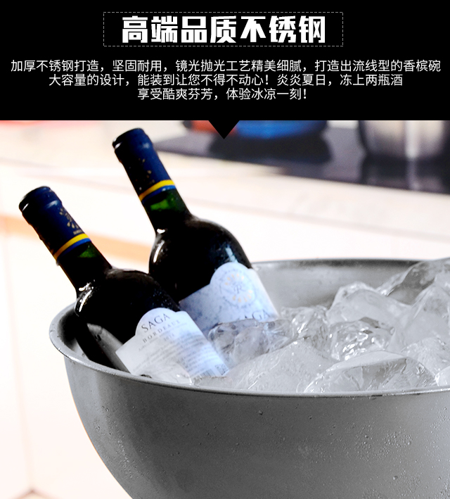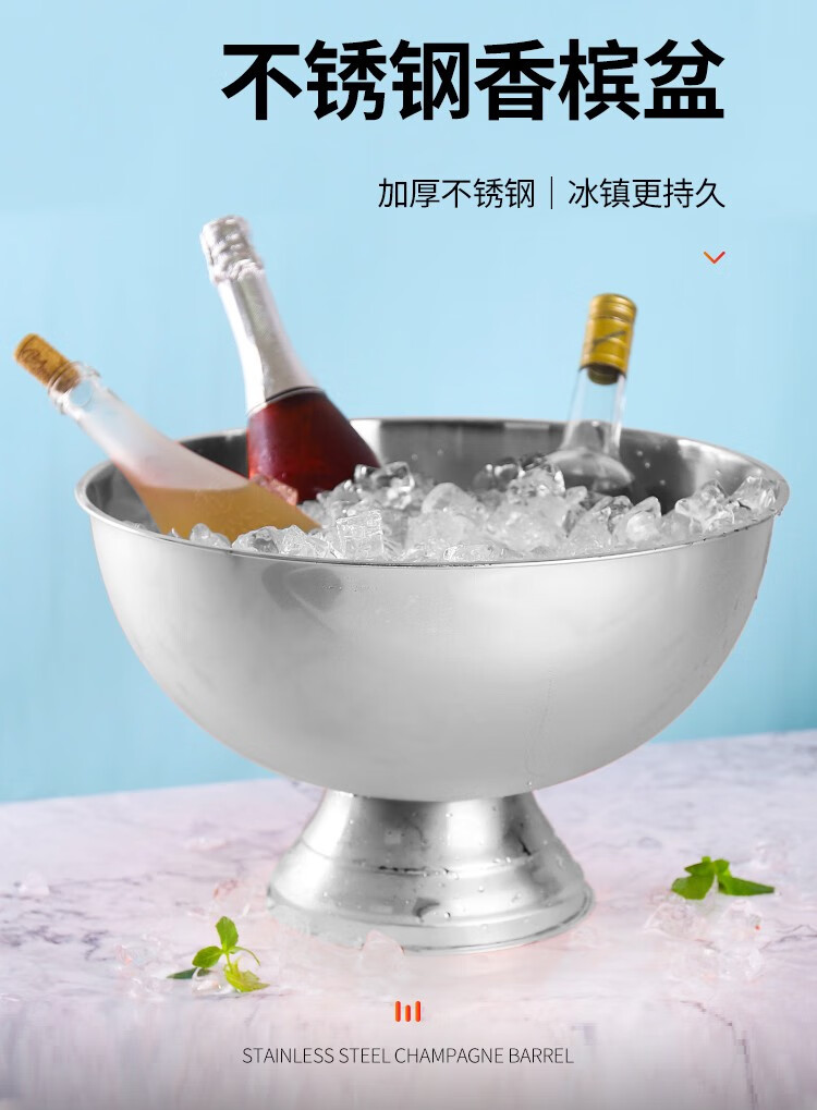 FEiNASi 304 stainless steel ice bucket red wine bucket champagne bowl/barrel beer bucket ice bucket champagne basin champagne ice bucket mirror silver-12L