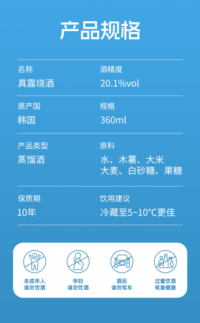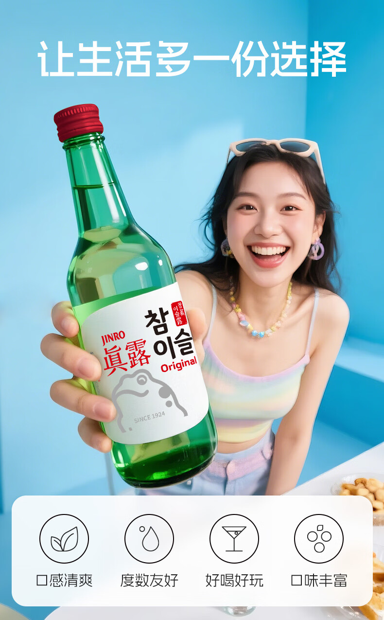 JINRO Korean Soju 20.1% 360ml*6 bottles imported foreign wine refreshing low alcohol tipsy New Year gift