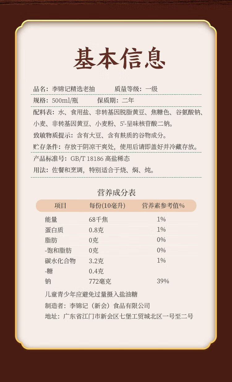 Lee Kum Kee Selected Series Selected Dark Soy Sauce 500ml Grade One 0 Added Preservatives Professional Braised Brewed Soy Sauce