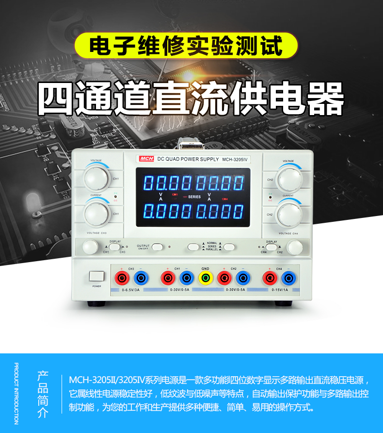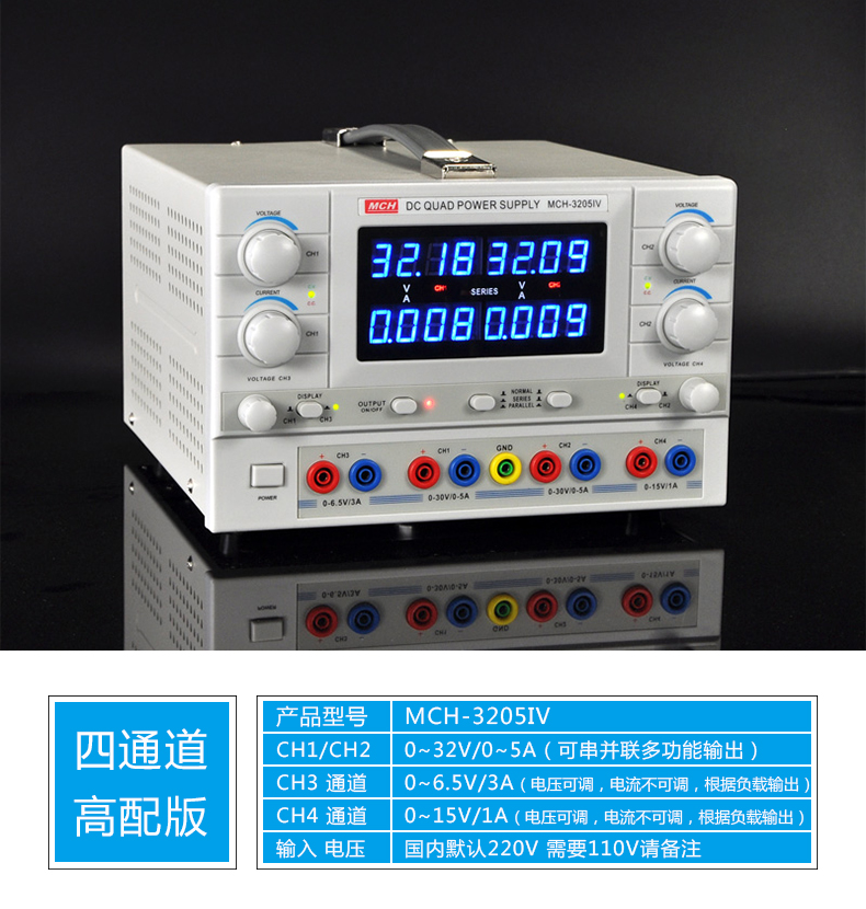 Meichuang (MCH) four-channel DC regulated power supply 32V5A multi-function output suitable for mobile phone and notebook repair experimental testing MCH-3205IV