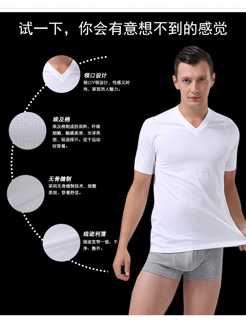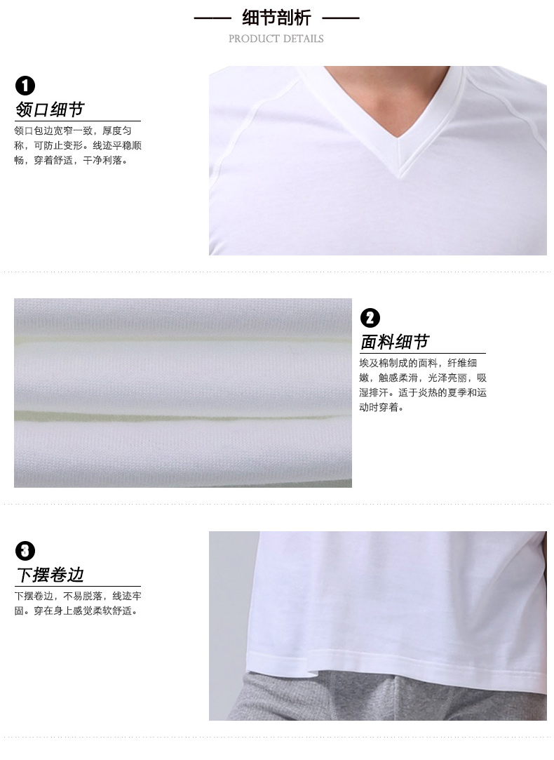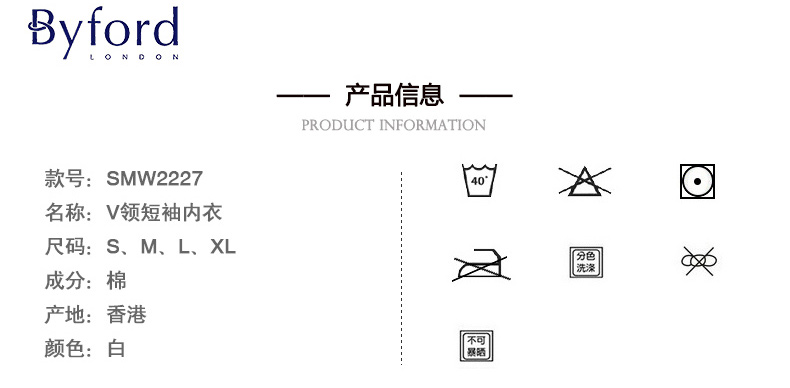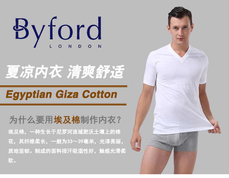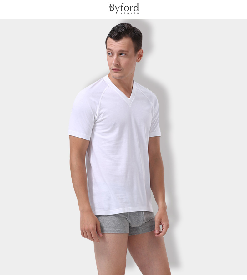 BYFORD men's v-neck short-sleeved T-shirt bottoming shirt men's Egyptian cotton sports bra men's business commuting casual SMW2227 white M