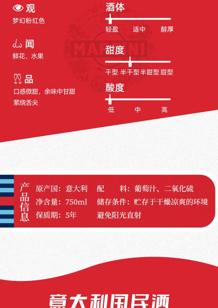 Martini wine imported from Italy Rose pink sparkling wine 750ml for boyfriend and girlfriend Spring Festival New Year gift