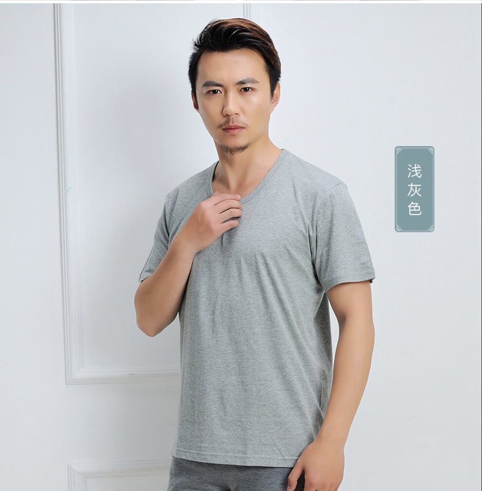 Minka summer men's middle-aged and elderly pure cotton old man's shirt round neck short-sleeved T-shirt dad cotton loose bottoming shirt white 5XL