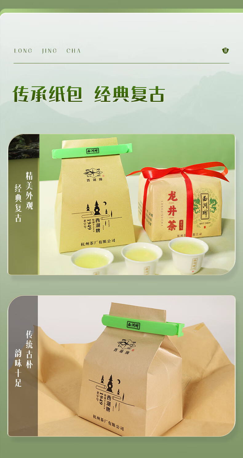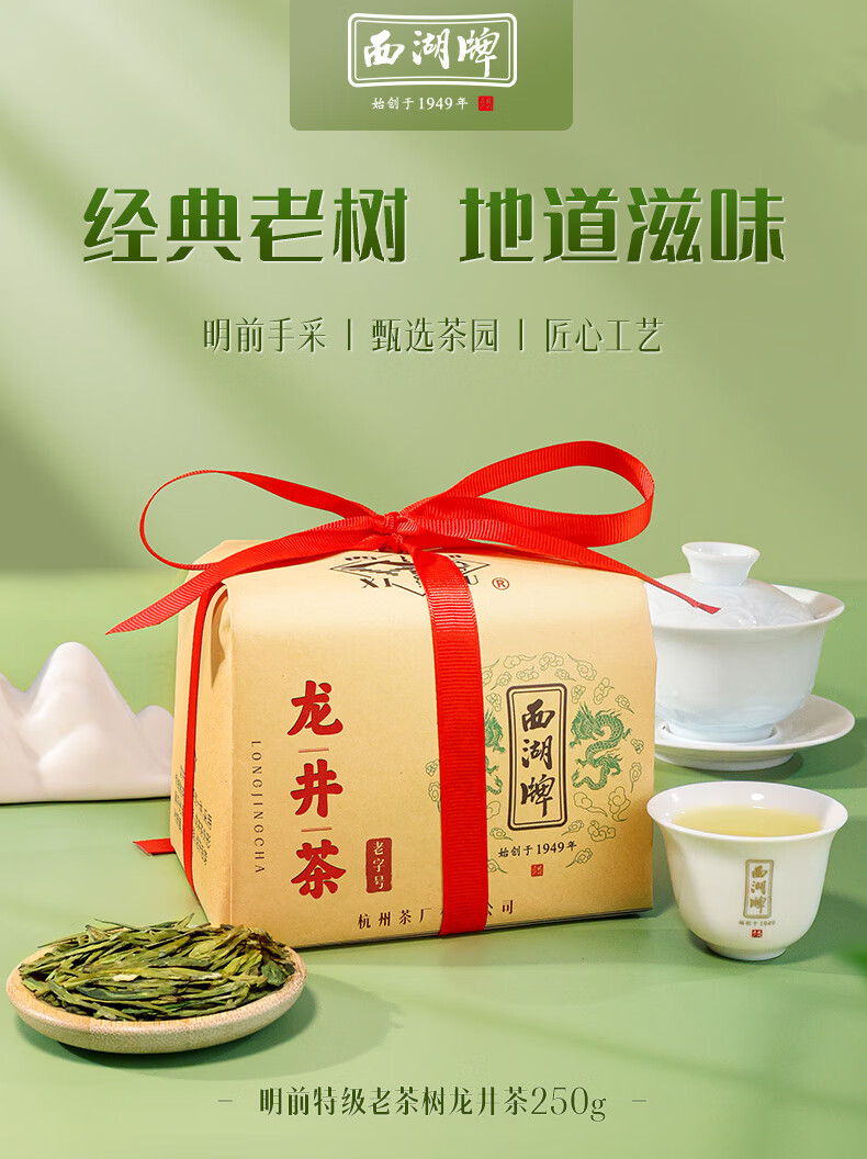 West Lake Brand 2025 New Tea Launched Green Tea Mingqian Special Grade Old Tea Tree Longjing Tea Paper Bag 250g Spring Tea Hangzhou Tea Factory