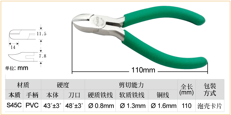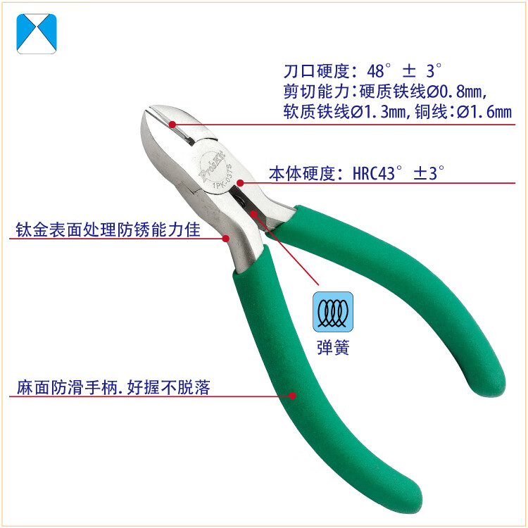 Pro skit diagonal pliers non-slip green handle titanium wire cutters (110mm) 1PK-037S