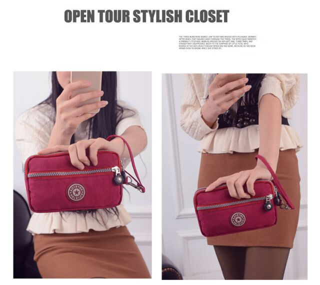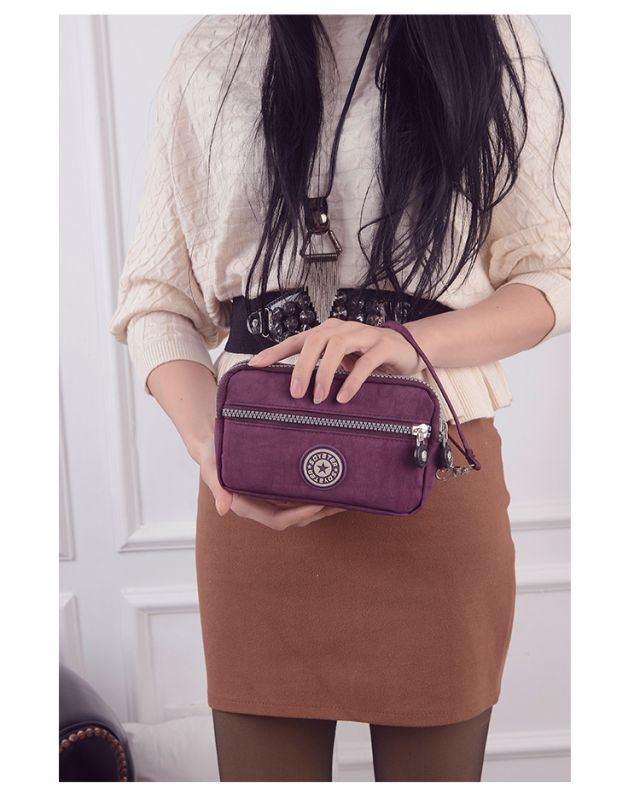 Beihu new canvas small handbag women's hand cloth wallet mobile phone bag key bag handbag multi-layer zipper long wallet dt104 dark purple