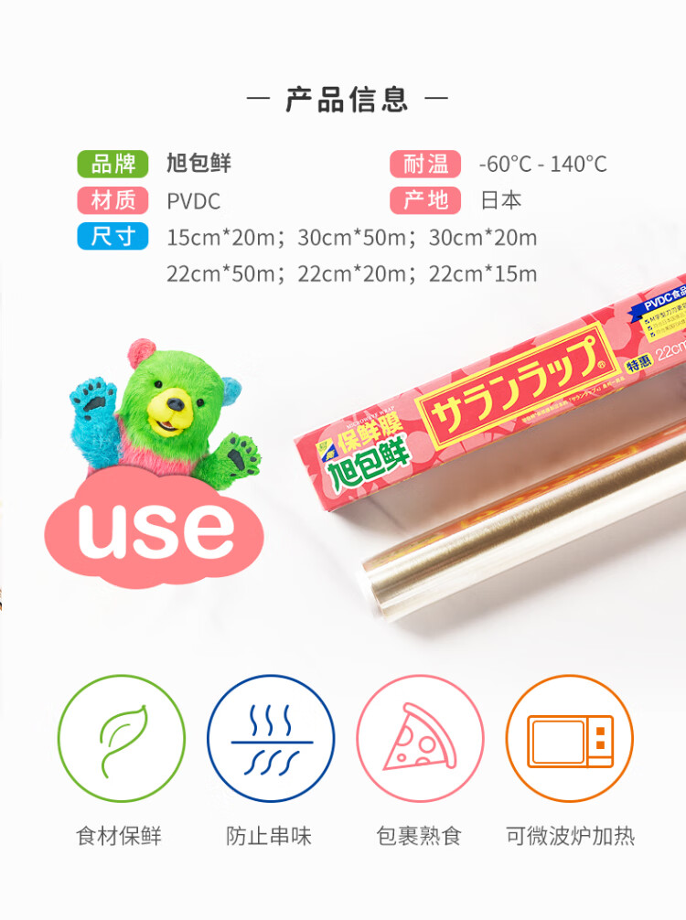Asahi Baoxian imported from Japan PVDC household food cling film 30cm 20m microwaveable high temperature resistant cutter