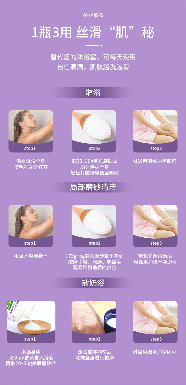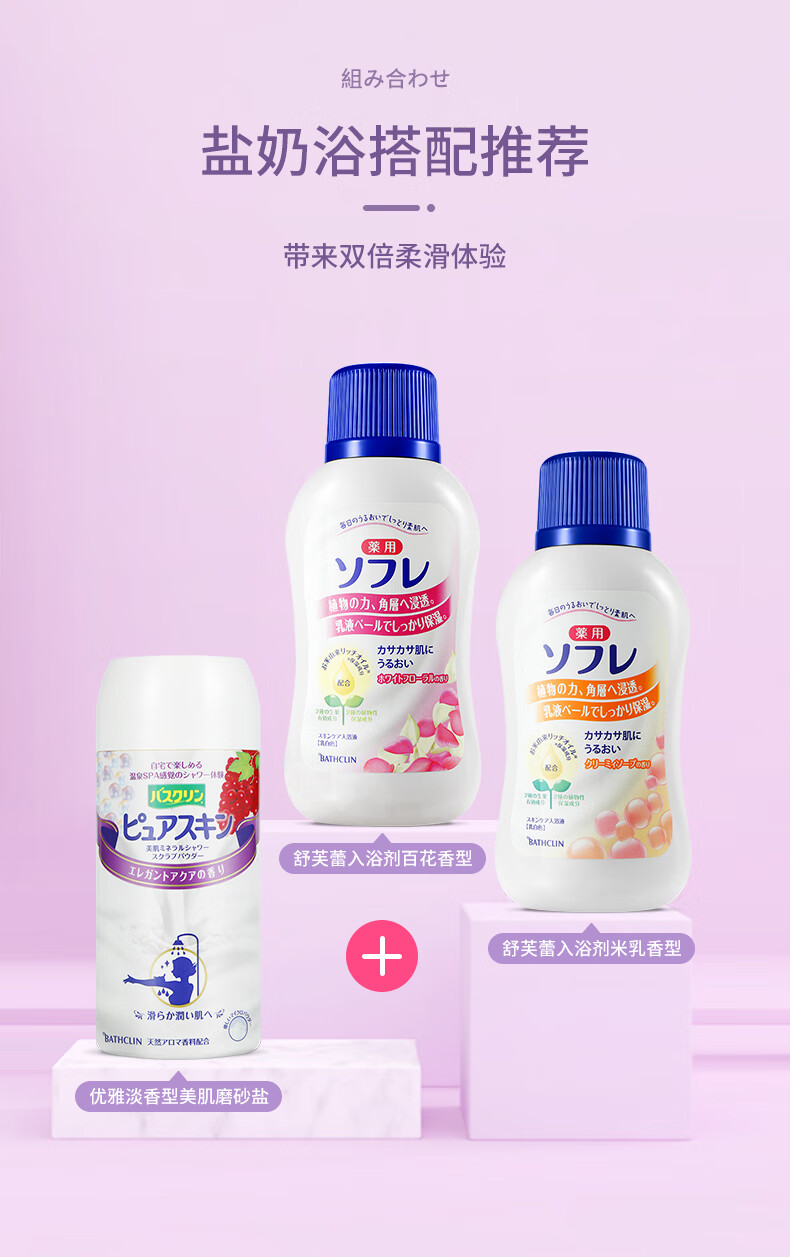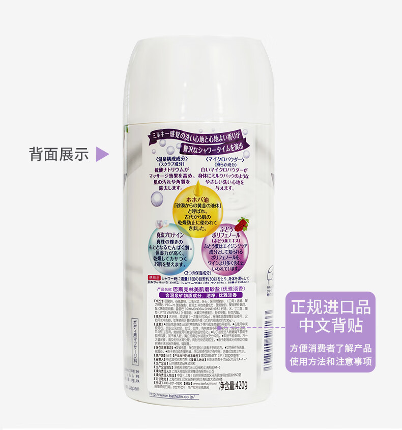 Bascolin Japan imported beauty scrub, shower salt exfoliation, long-lasting fragrance, elegant light fragrance 420g