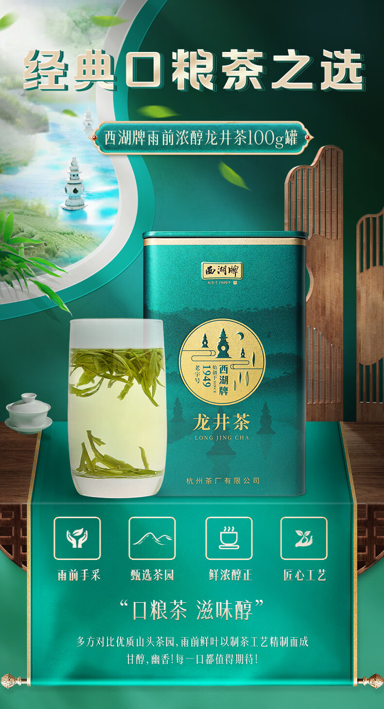 West Lake Brand 2025 New Tea Launched Green Tea Rich Longjing Tea Canned Before the Rain 100g Spring Tea Hangzhou Tea Factory