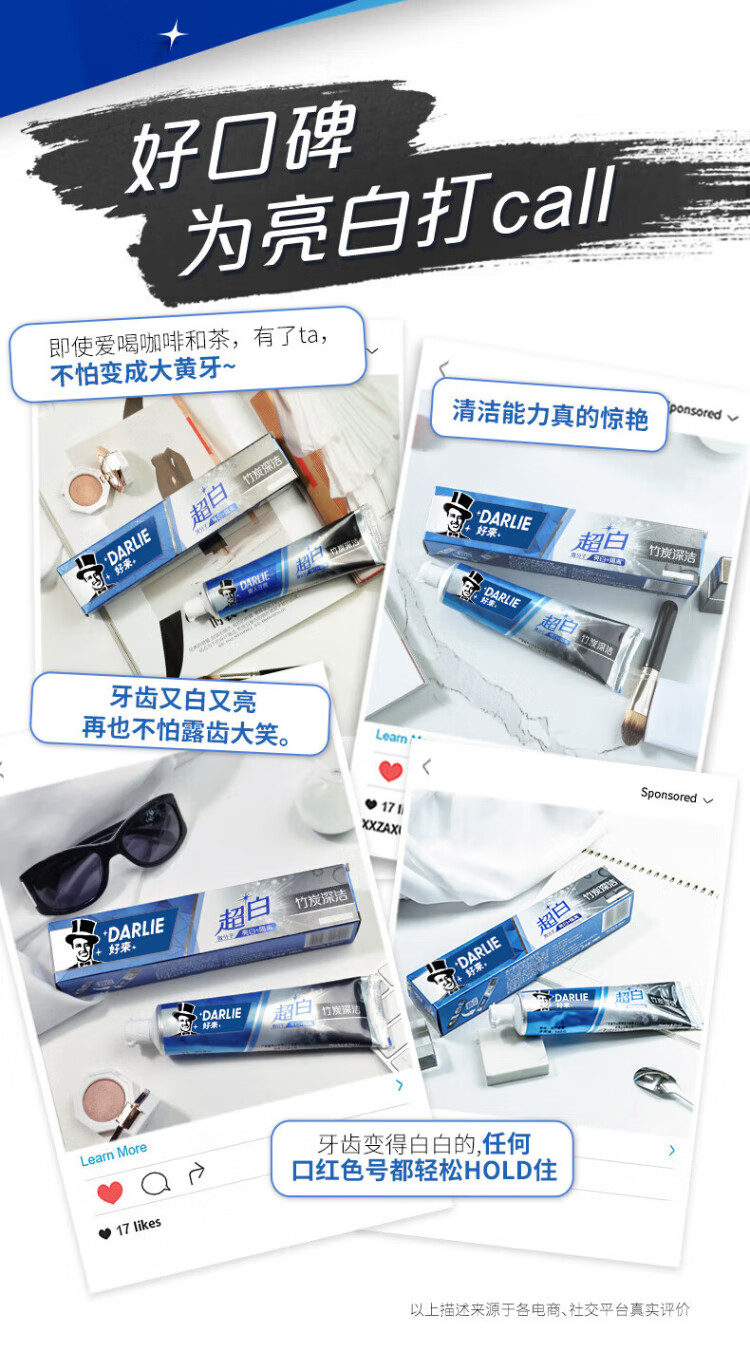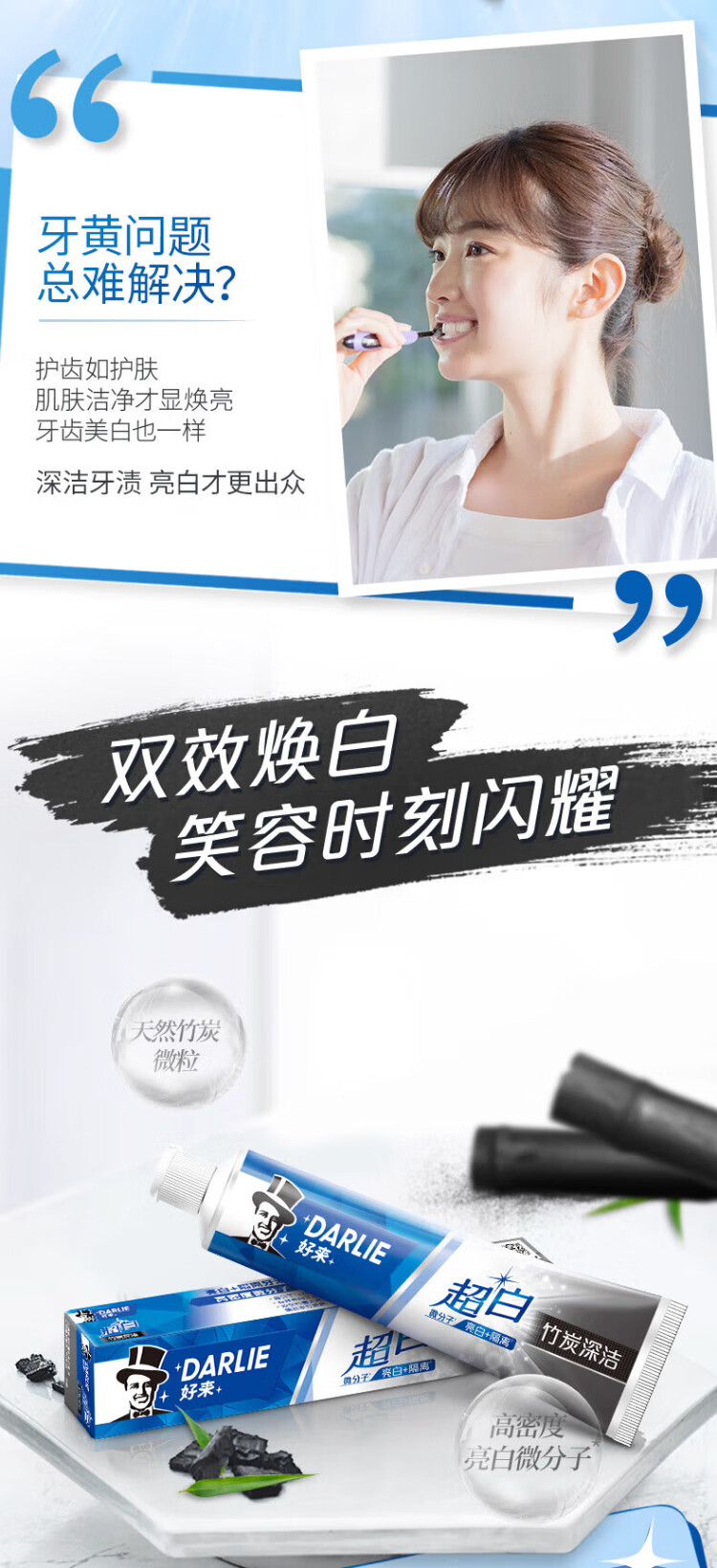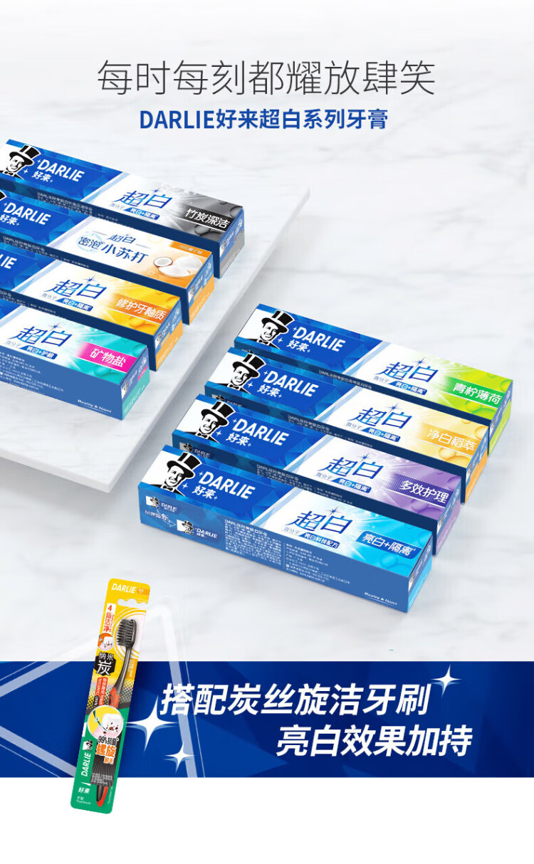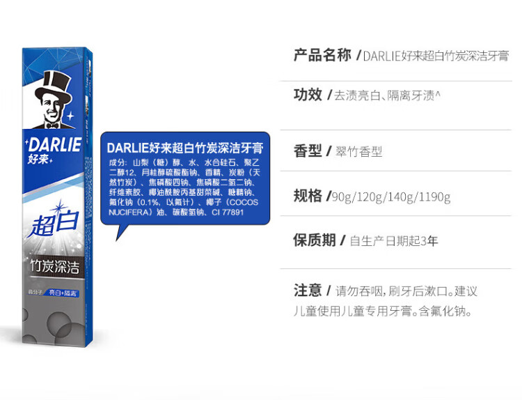 DARLIE (formerly Black) White Deer Recommends Super White Bamboo Charcoal Deep Cleansing Toothpaste 140g Whitening and Removes Teeth Stains New and Old Packaging