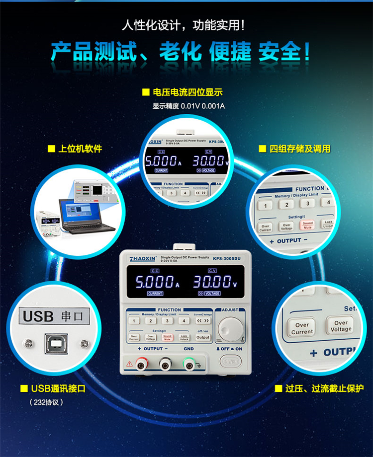 ZHAOXIN programmable DC regulated power supply 30V5A20A62V10A60V5ADU with interface software CNC power supply KPS-3010D 30V10A (without interface)